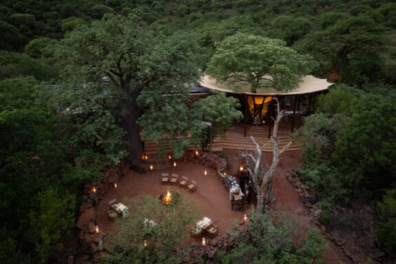 Sip on a drink while watching the ruby sun dip into the mopane woodland. Perched...