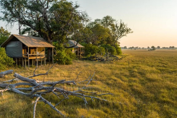 Moremi Crossing is a new 16 tented camp built on a palm fringed island surrounded...