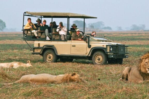 The vast, meadow-like Busanga Plains extends in all directions around the camp, offering a remarkable...