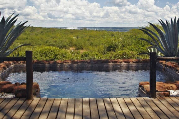 Set on a hill bordering the Mosi-oa-Tunya National Park and overlooking unspoilt bush, Stanley Safari...