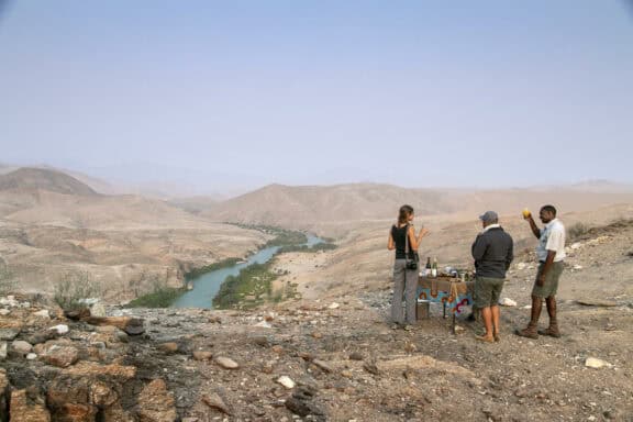 Set amongst shady trees on the banks of the Kunene River, Wilderness Serra Cafema is...