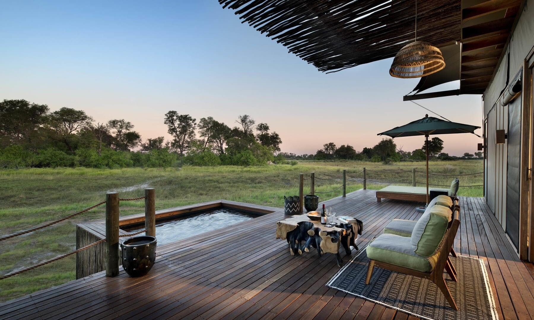 At Atzaro Okavango, we take pride in our harmonious integration with the stunning natural environment and incorporation of the diverse culture of the local people. Our camp is powered entirely by solar energy, offering the perfect balance of sustainable living and opulent comfort. Indulge in our on-site wellness spa, maintain your fitness routine in our fully equipped gym, or take a refreshing dip in our expansive 20m pool. Each luxurious tent comes with air-conditioning, private plunge pools, and Wi-Fi, ensuring that you never have to compromise on modern amenities while enjoying the serenity of the African wilderness.