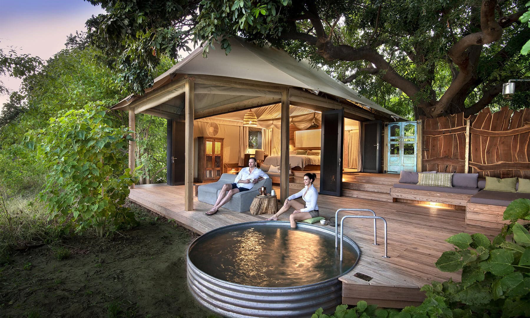 Nyamatusi Camp is situated on the banks of the renowned Zambezi River and is a representation of the surrounding environment. The camp is reminiscent of days gone by and is inspired by nature. Nyamatusi comprises of 6 spacious and well-appointed luxury tents, each with its own private deck and plunge pool, offering remote views overlooking the Zambezi.