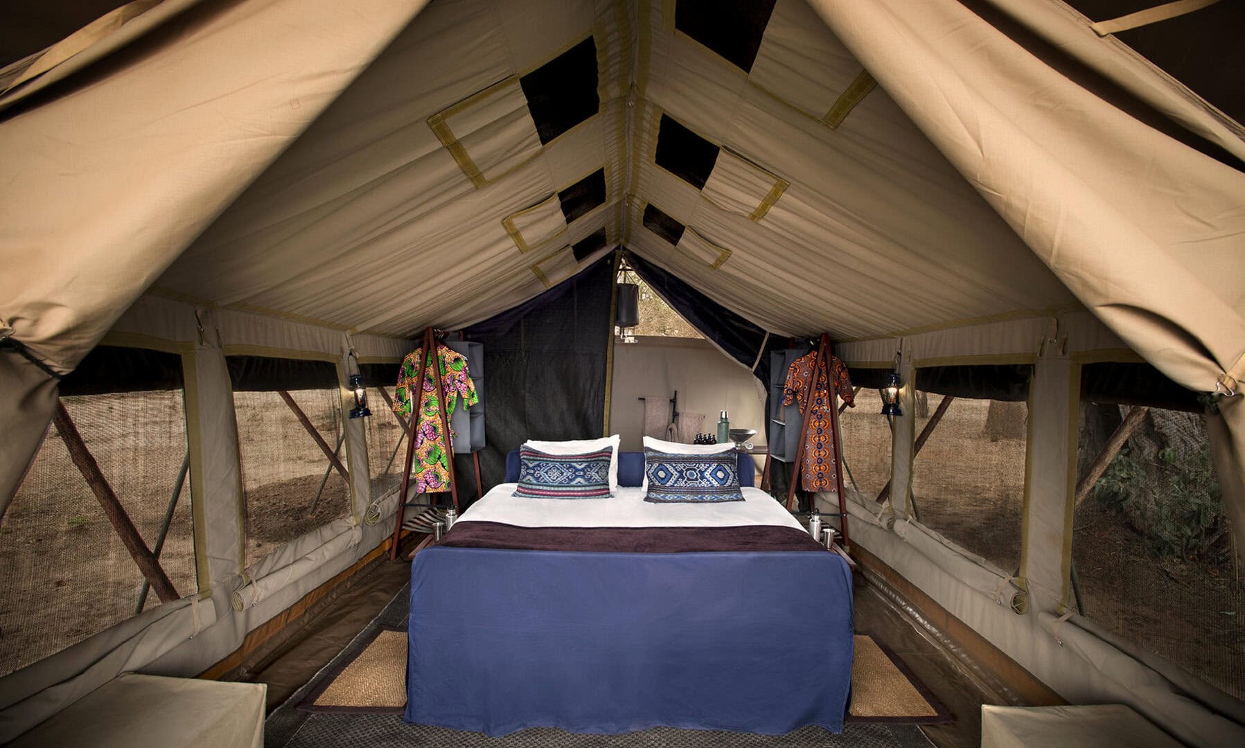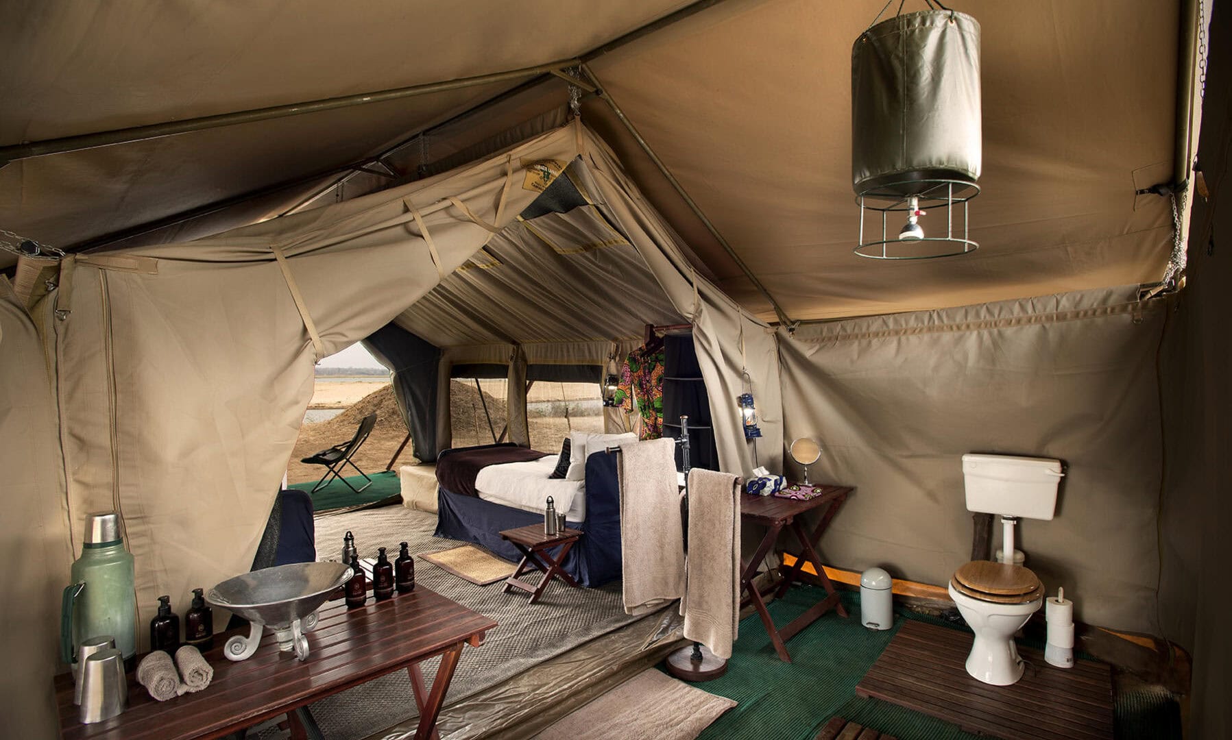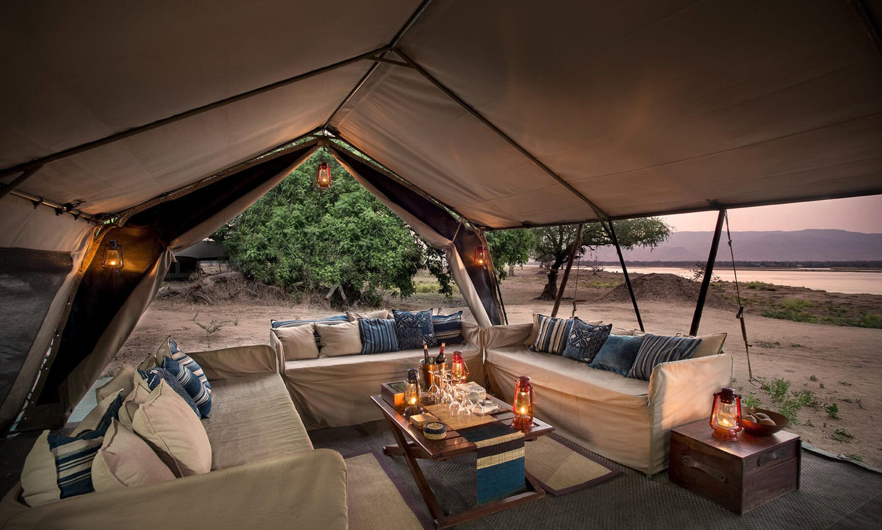 Zambezi Expeditions offers one of the best ways to experience Mana Pools on the banks of the mighty Zambezi River. Comfortable yet classic, the camp offers the kind of intimacy with nature that can only be achieved by immersing yourself in the heart of the wild. Fall asleep to the sound of the flowing river and chuckles of hippo and wake-up with the dawn chorus to a spectacular African sunrise. The 12-bed luxury camp comprises of 6 twin bedded mini-meru style tents with en-suite bathroom facilities and bucket showers.