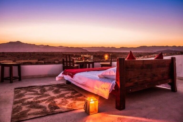 The lodge provides a unique experience, allowing you to immerse in the serene and raw beauty of the Namib Desert from the comfort of your private chalet. Each chalet is designed to harmonize with the surrounding environment, offering a tranquil retreat after a day of adventure.