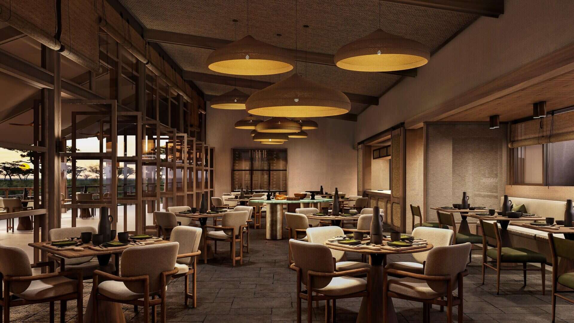 The living spaces are arranged to ensure the landscape remains your constant companion throughout your stay. You can find quiet moments of reflection in the wellness area, which features a gym and spa, or enjoy the swimming pool that has been integrated into a natural wetland. Every suite is positioned to frame a spectacular view of Mount Kilimanjaro, allowing you to watch the changing light on the snow-capped peak.