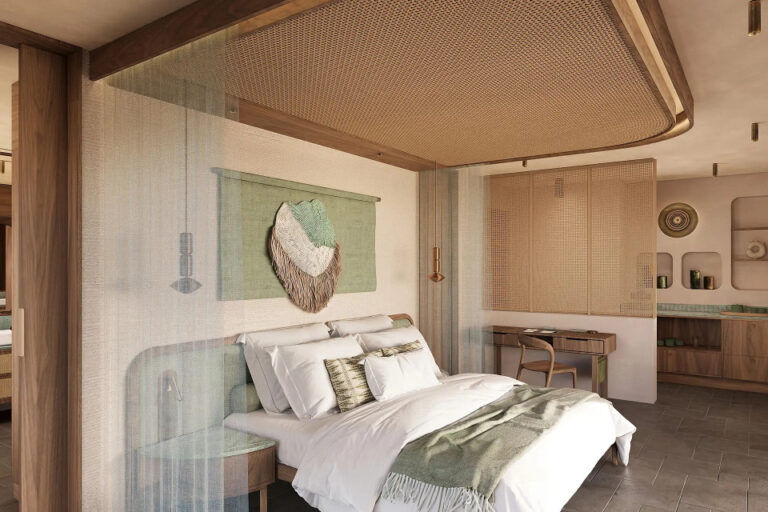 Set to open in June 2026, Kitirua Plains Lodge offers an architecturally striking retreat within a 128-acre private concession adjoining Kenya’s Amboseli National Park. The lodge’s innovative design thoughtfully incorporates Maasai elements and local materials, creating a harmonious blend with its surroundings beneath the iconic silhouette of Mount Kilimanjaro.