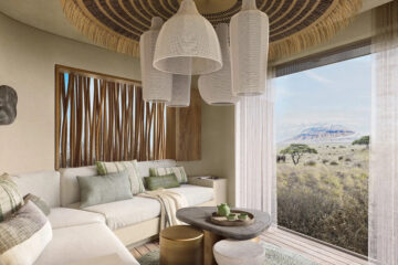 The property features 11 Standard Villas, two two-bedroom Family Villas, and the exclusive three-bedroom Geoffrey Kent Suite, complete with private pool, chef, and guide. Located in East Africa’s most significant elephant habitat, locally known as “empusel” (salty dusty place), the lodge provides access to an intoxicating mixture of environments, from deep-green marshes to acacia forests and sweeping savannahs.