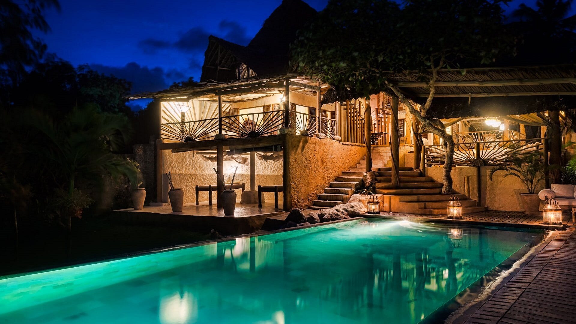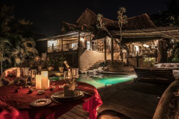 African-style villas where the theme is high Makuti roofs, ivory Danish floors, wooden beams, Lamu doors and impressive African and Far Eastern Artefacts.