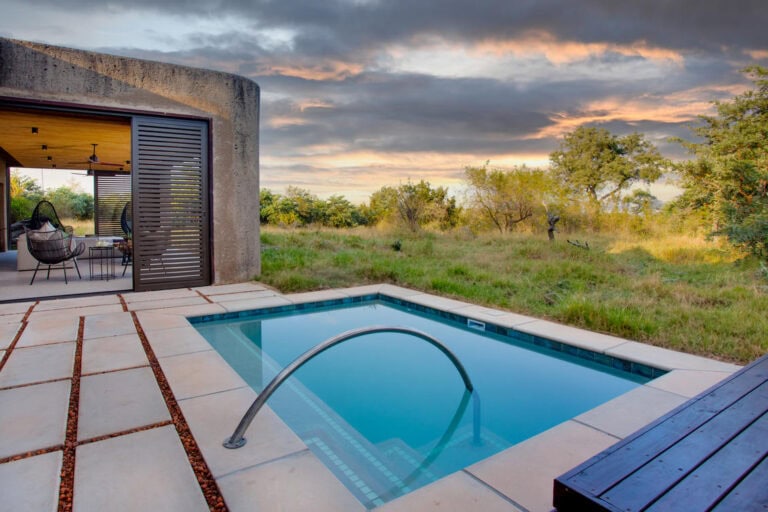 The villa has a private plunge pool and a private vehicle for your game-viewing experience.
