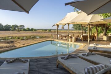 The camp sits elevated on a boardwalk, the spacious luxury tents have an outdoor shower and a plunge pool. From your private deck, witness wildlife wandering freely through camp, particularly the elephants attracted by the surrounding Ana trees.