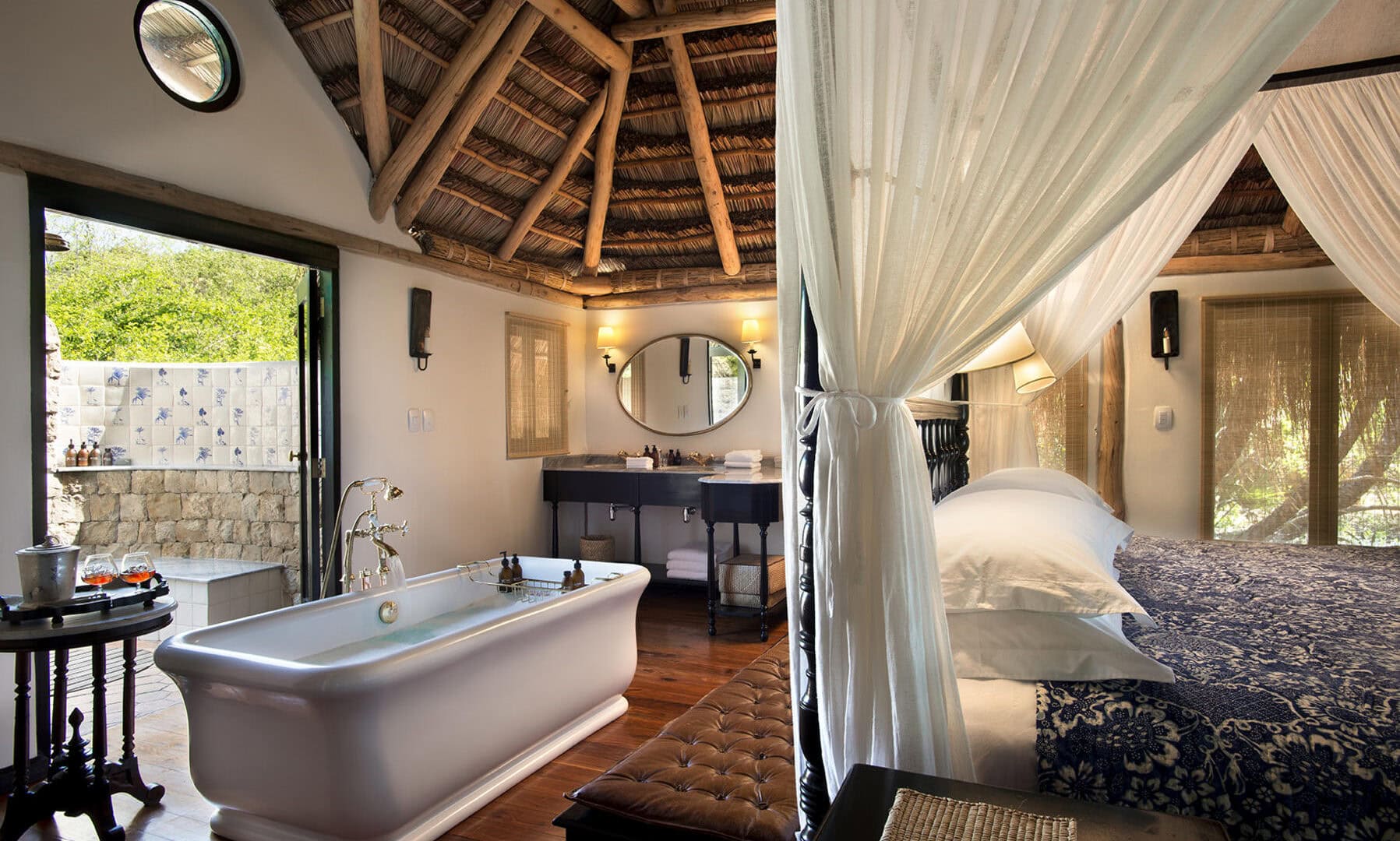 The ten casinhas and two cabanas boast four-poster beds, private decks and plunge pools.