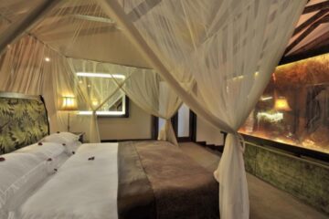 Lying on the gently rolling foothills that cascade down from the ever-present Mount Meru is the bustling and vibrant town of Arusha. It is here on the outskirts of this town, hidden amongst one of Tanzania’s largest coffee plantations, that you will find Arusha Coffee Lodge, a perfect haven for relaxation either before or after any East African safari.