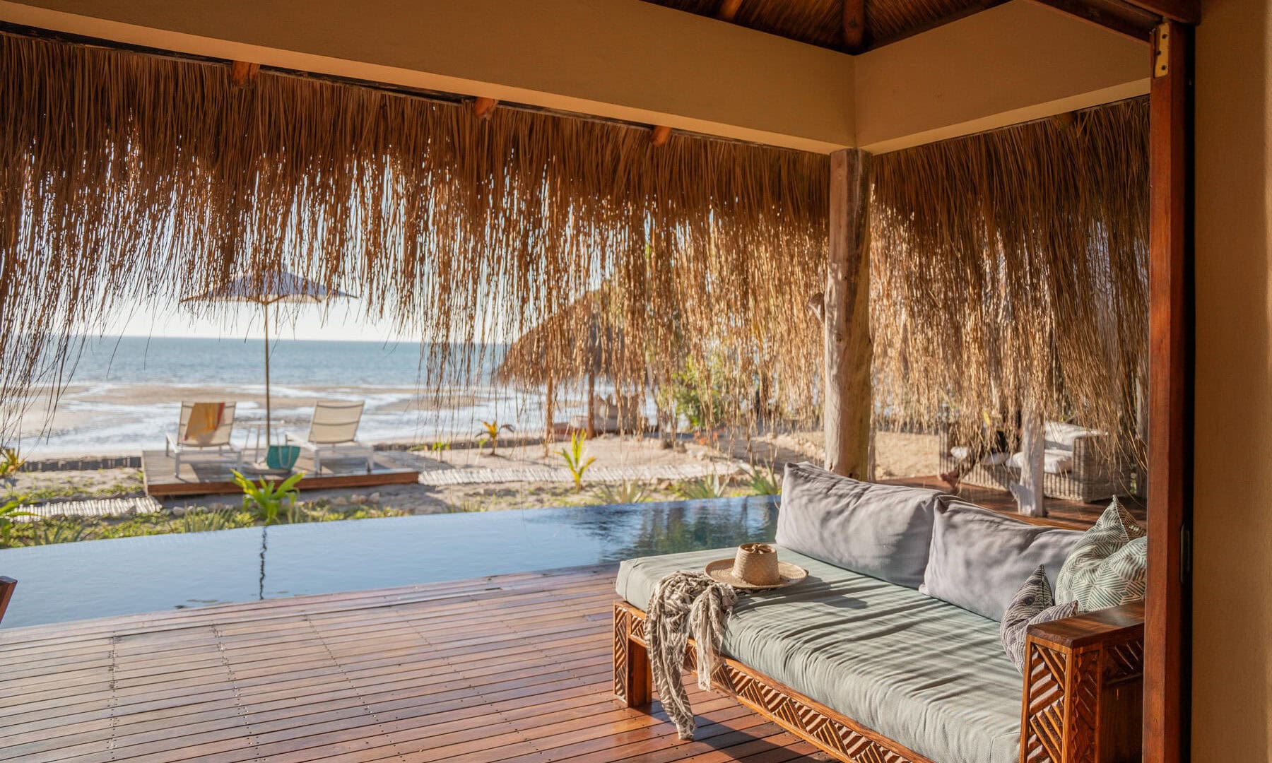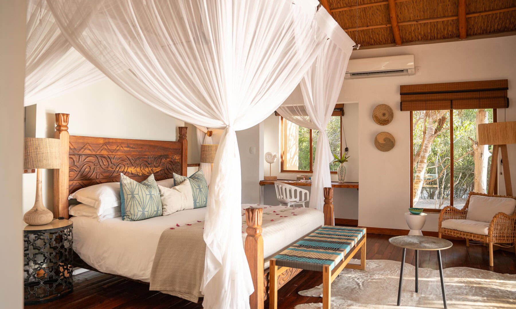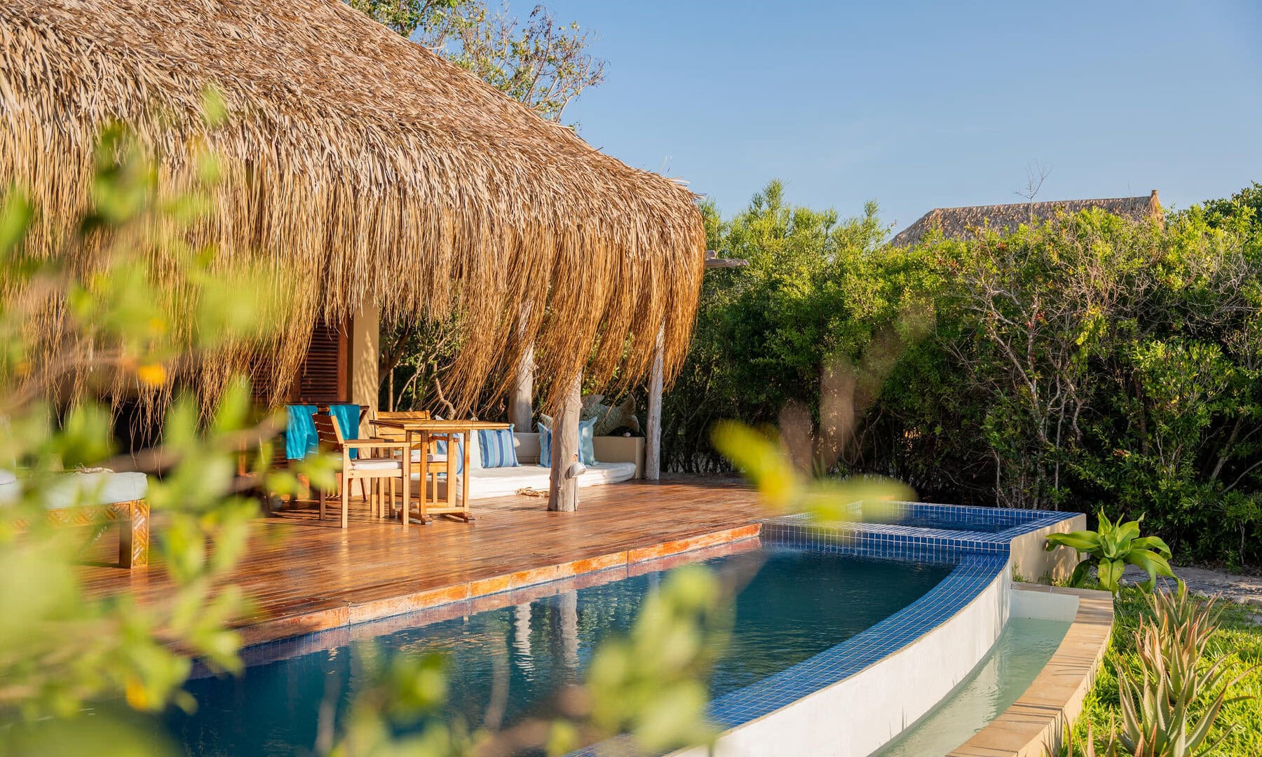 The resort features 20 spacious ‘beach-chic’ villas, each with a private pool, just steps away from white sand beaches. These air-conditioned sanctuaries blend modern comforts with Mozambican flair, boasting handcrafted king-size beds, indoor and outdoor showers, and beachfront salas.