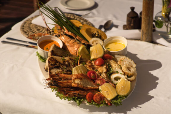 Elegant rooms come equipped with air-conditioning, a terrace overlooking the islands, a mosquito net draped over the bed as well as a modern en-suite bathroom. Or you may treat yourself to a suite with a private pool, relaxing sitting area, giant bathtub and a bed you could get lost in…