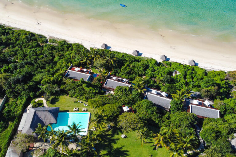 Located in Vilanculos, along the South East coast of Mozambique, Bahia Mar Boutique Hotel rests on a lush green hillside overlooking an expansive beach.