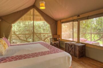 At the doorstep of Masai Mara National Reserve, Basecamp Masai Mara is located along the Talek river in a lush forest, giving the camp a serene atmosphere.