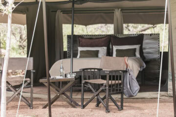 This camp, with its five spacious tents, promises privacy and breathtaking views of the savannah. Embrace the tranquility and stunning sunrises, enjoying amenities like bio-flush toilets and traditional bucket showers.