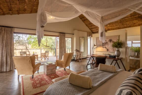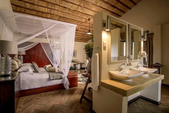 Step into an unparalleled African safari experience at Becks Safari Lodge; the latest addition to the renowned Karongwe Portfolio. Offering guests the full package, this safari retreat incorporates luxury accommodation, dedicated staff and big five game viewing; partnered with a spectacular look at some of South Africa’s most beautiful surrounds and a distinctive, personalised ‘home away from home’ feel. Set in the Karongwe Private Game Reserve and overlooking the stunning Makhutswi River, this intimate location offers eleven safari suites bordering the river as well as two couples oriented suites looking onto a popular waterhole. Outstanding views welcome guests to a unique ifestyle experience, combining luxe living with a deep appreciation for South Africa’s natural environment.