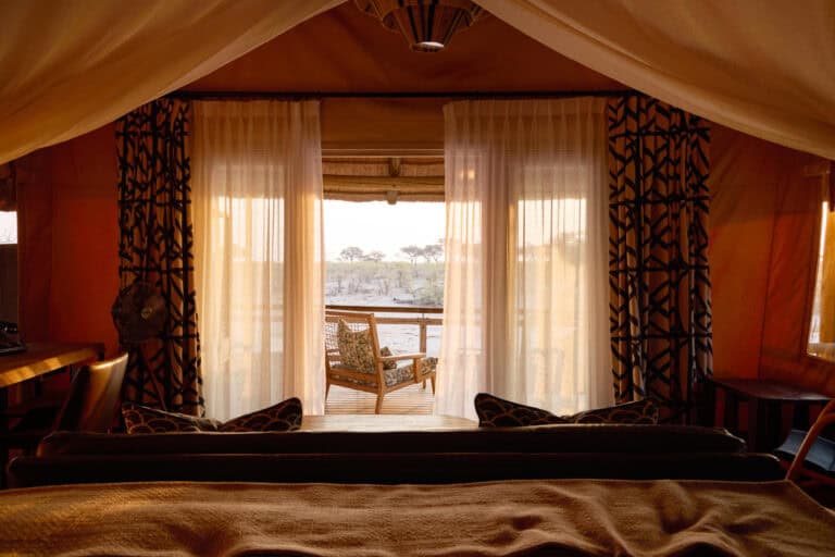 Perched on the banks of the Savute Channel, Belmond Savute Elephant Lodge places you in the heart of Chobe National Park. With just 12 luxurious tented rooms raised on wooden platforms, this intimate accommodation ensures a private and serene atmosphere, providing you with a sophisticated base in the bush.