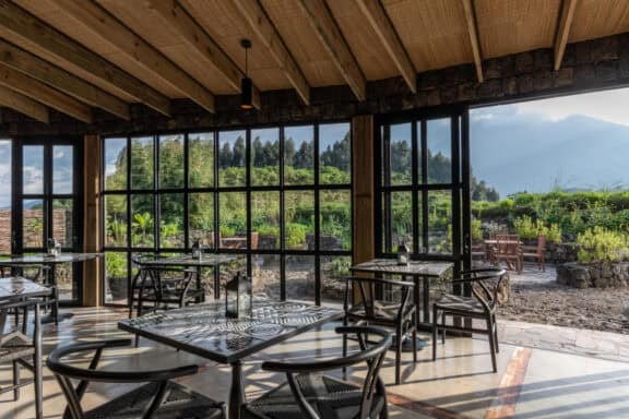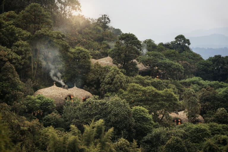 Wilderness Bisate is located in the natural amphitheatre of an eroded volcanic cone and has dramatic views of the peaks of the volcanoes, Bisoke and Karisimbi, rearing up through the Afro-alpine forests of nearby Volcanoes National Park. Six luxurious en-suite Forest Villas maximise comfort and views, while retaining environmental principles and reflecting the culture of rural Rwanda. Each guest contributes to Bisate’s biodiversity conservation and local community projects – making a far-reaching impact on an iconic endangered species: the mountain gorilla.