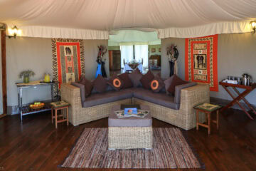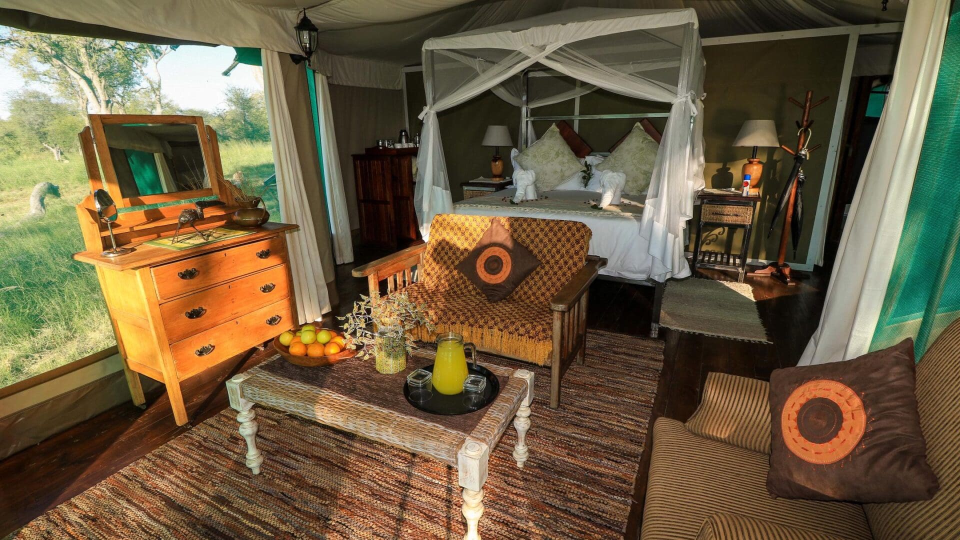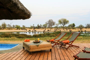 The lodge overlooks a vibrant waterhole where elephants and other wildlife gather daily. From your elegantly appointed tent or bungalow, watch the plains come alive with natural drama.