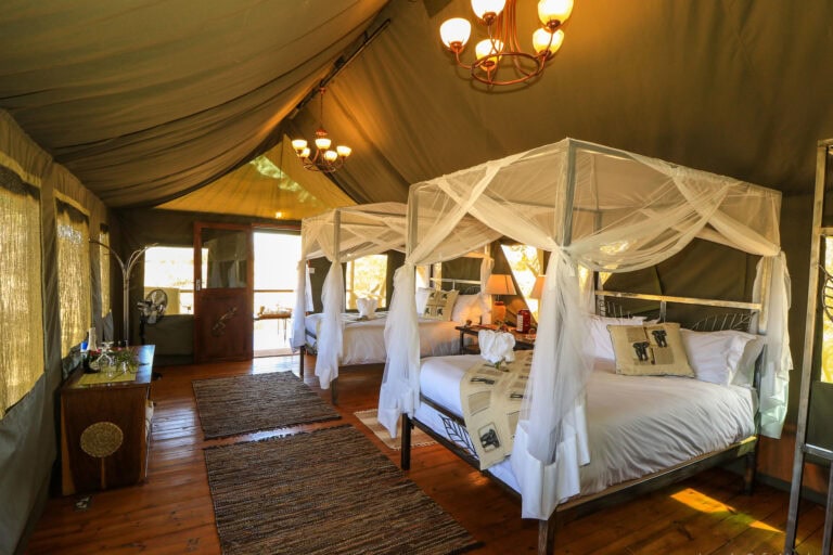 Situated on the edge of Hwange National Park, Bomani Tented Lodge welcomes you to the magnificent Ngamo Plains. Set within a 5000-acre private reserve, this charming safari haven offers intimate access to Zimbabwe’s wilderness.