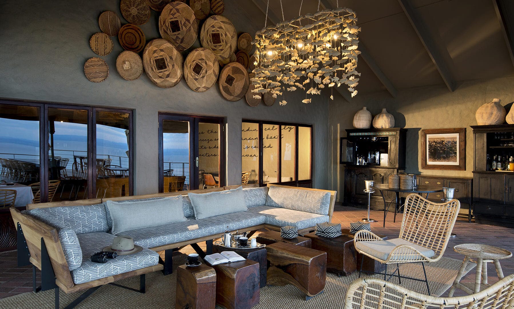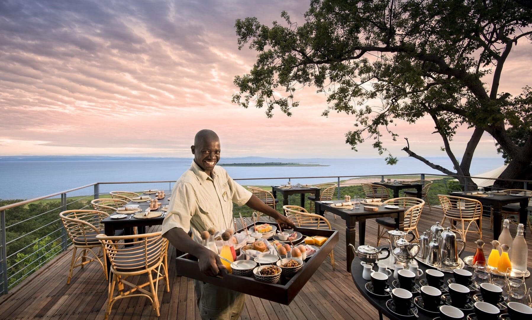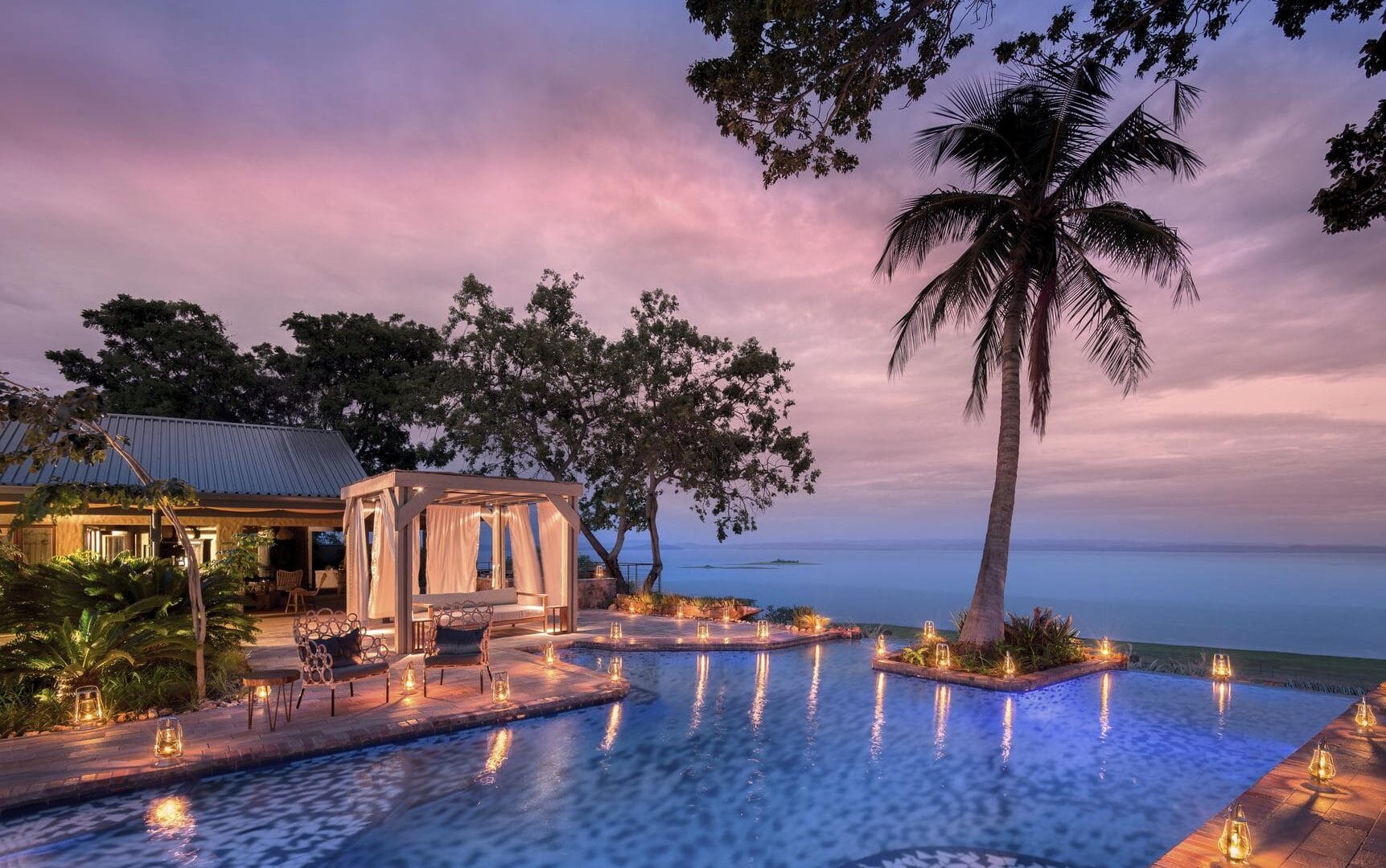 The safari lodge has a total of 10 luxury rooms, all with balconies and uninhibited views over Lake Kariba. Taking centre stage is the beautiful infinity pool that seems to blend endlessly into the lake horizon. The pool is surrounded by intimate wine and dining terraces on different levels. The lodge interiors have been beautifully finished in a fusion of contemporary western and African styles.