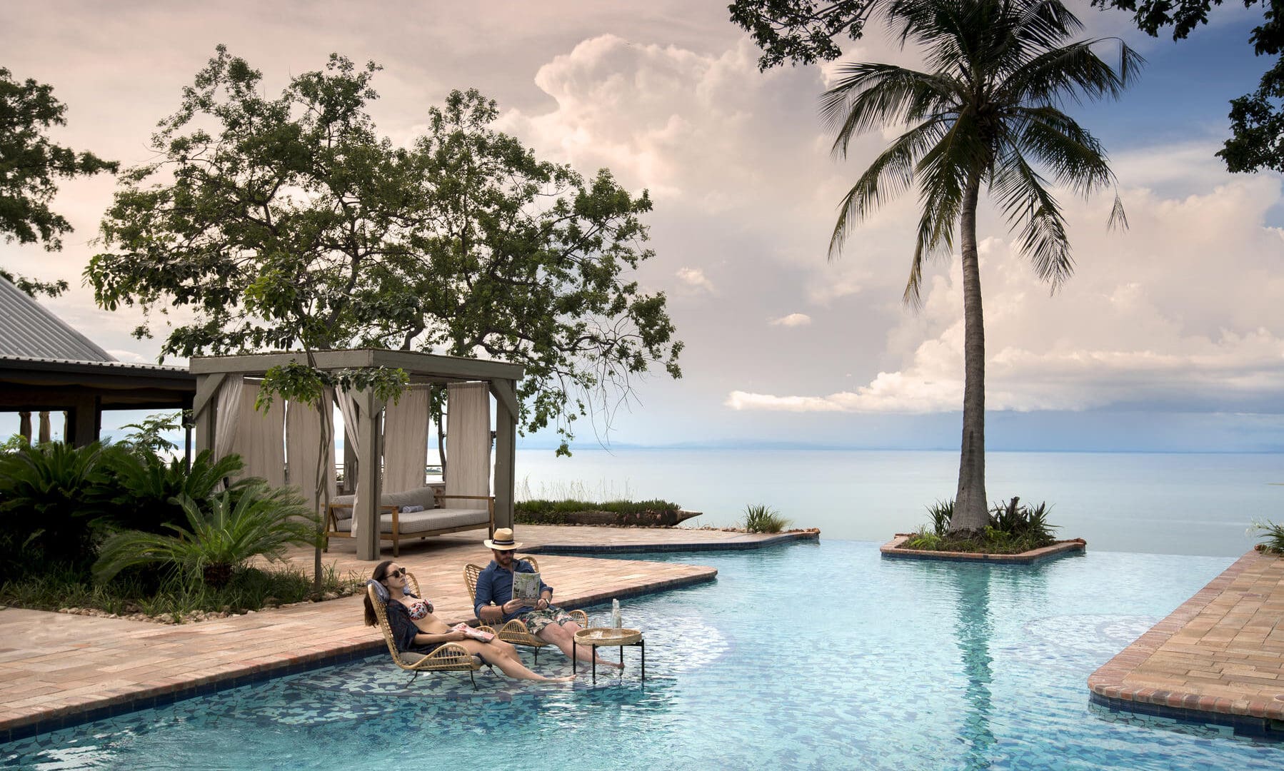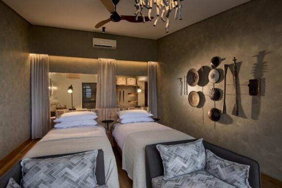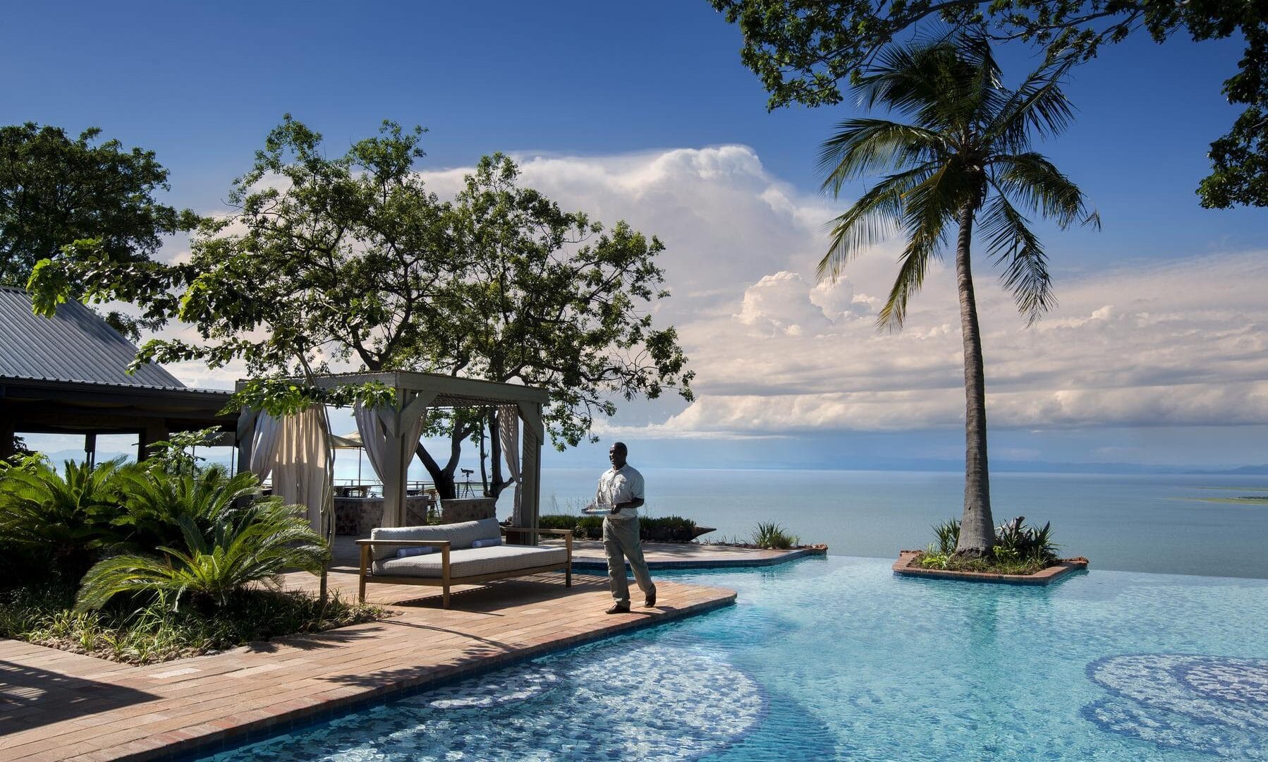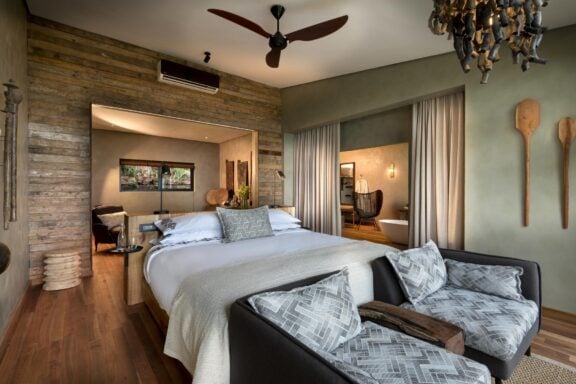 The safari lodge has a total of 10 luxury rooms, all with balconies and uninhibited views over Lake Kariba. Taking centre stage is the beautiful infinity pool that seems to blend endlessly into the lake horizon. The pool is surrounded by intimate wine and dining terraces on different levels. The lodge interiors have been beautifully finished in a fusion of contemporary western and African styles.