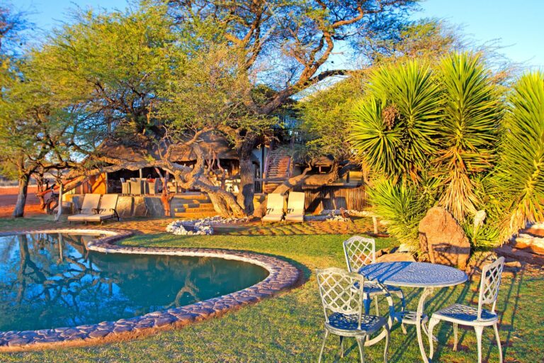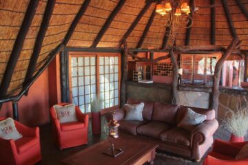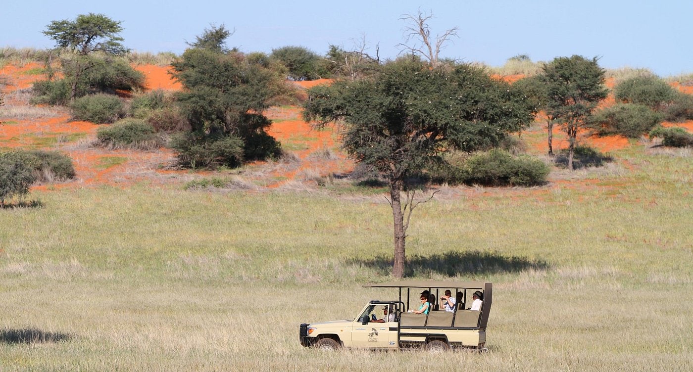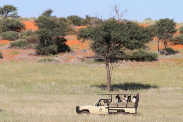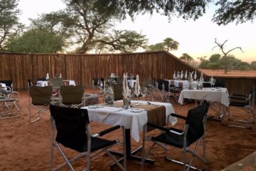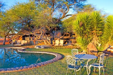 The Camelthorn Kalahari Lodge is appropriately called as it is situated between two dunes in a location dotted with unique Camelthorn trees.