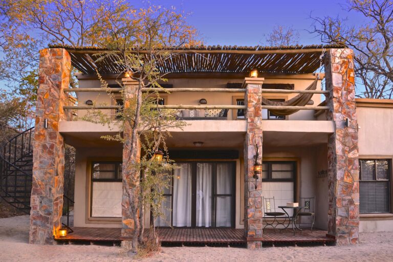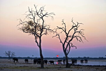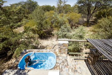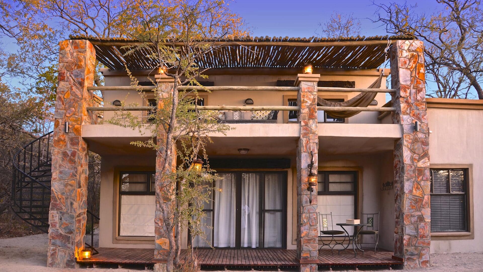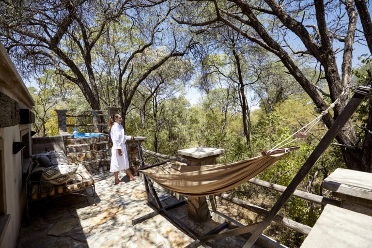 Located on the edge of the Ngamo Plains, Camelthorn Lodge centres around an ancient camelthorn tree. The lodge features eight forest villas, each with canopy-level balconies accessed by spiral staircases – perfect for afternoon relaxation on daybeds or hammocks.