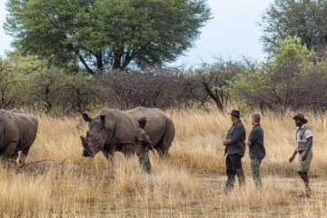 Large bedrooms with sliding glass doors offer panoramic views, while four villas boast upstairs splash pools. Located within the Imvelo Ngamo Rhino Sanctuary, you might even spot rhinos wandering near the lodge!