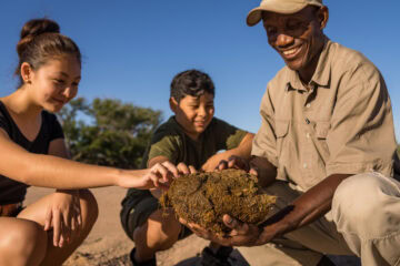 The camp organizes various activities, including guided nature walks in the Twyfelfontein Conservancy and tours to see the Bushman etchings, Organ Pipes, and Burnt Mountain. A highlight is the Elephant Nature Drive which offers a chance to spot rare desert-adapted elephants in the arid northern Namibian landscape.