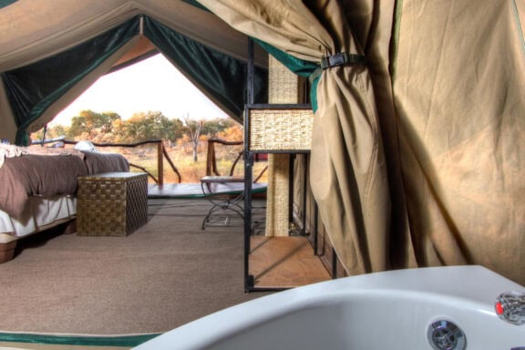Camp Savuti overlooks the dense Savuti area and all 5 of the Meru-style tented rooms have elevated balconies taking advantage of these views. The large, spacious tents are located in such a way that they enjoy privacy and exclusivity.