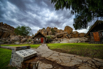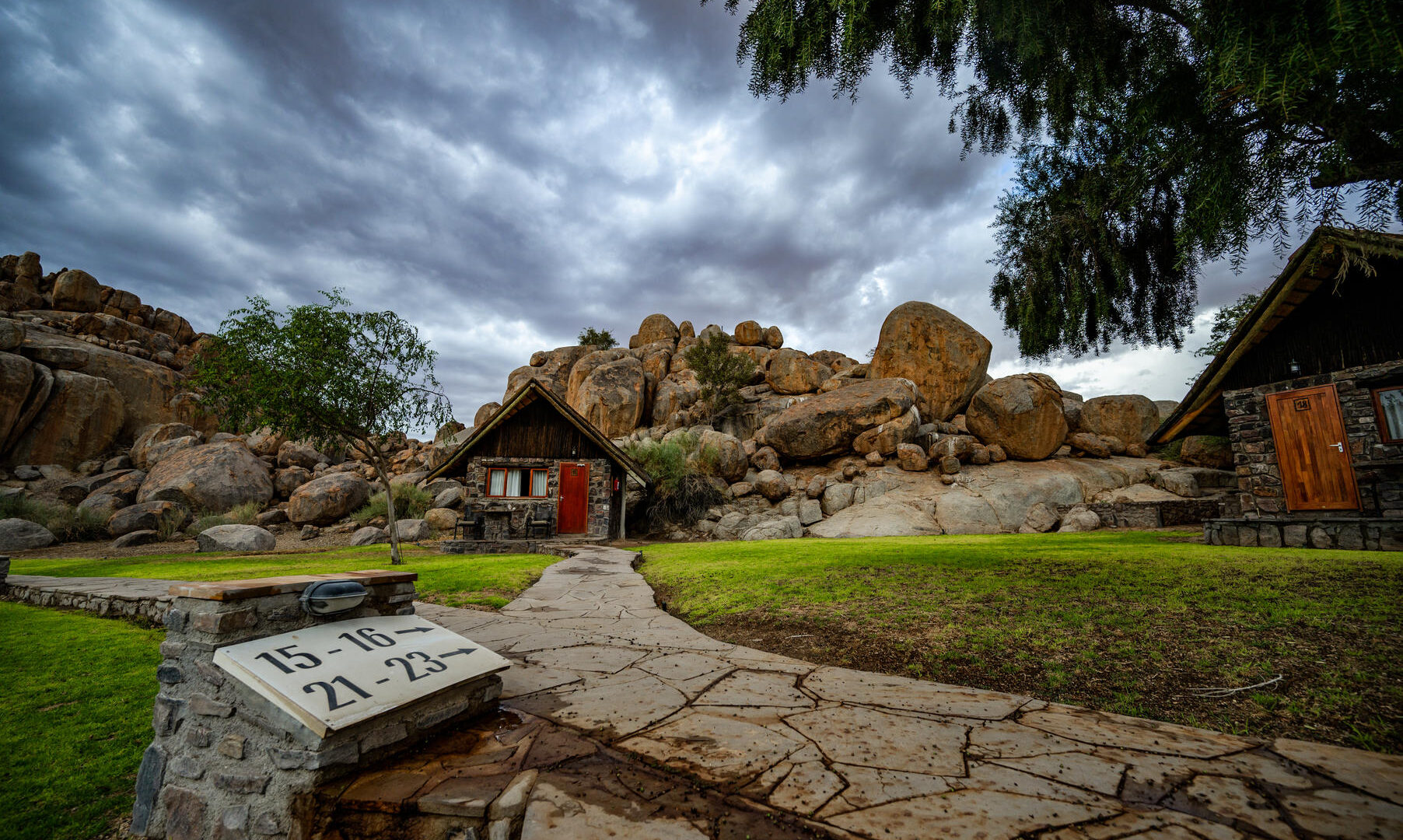 Walkways lead to 30 natural stone chalets nestled amongst granite boulders.