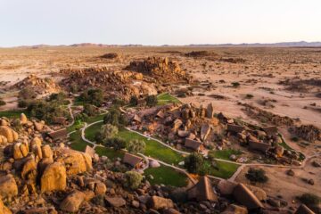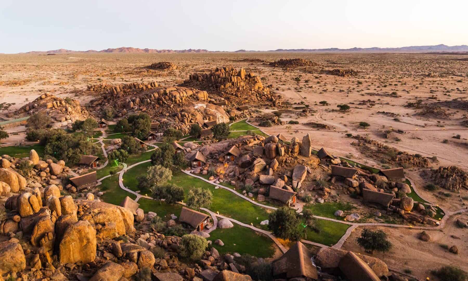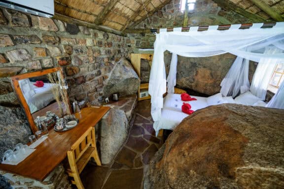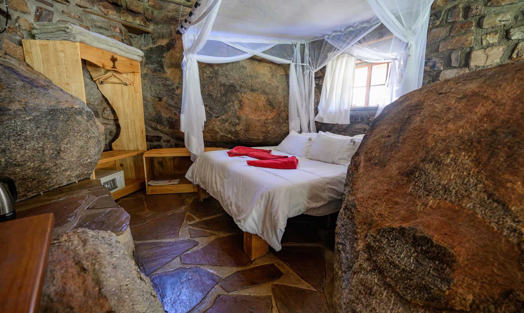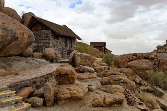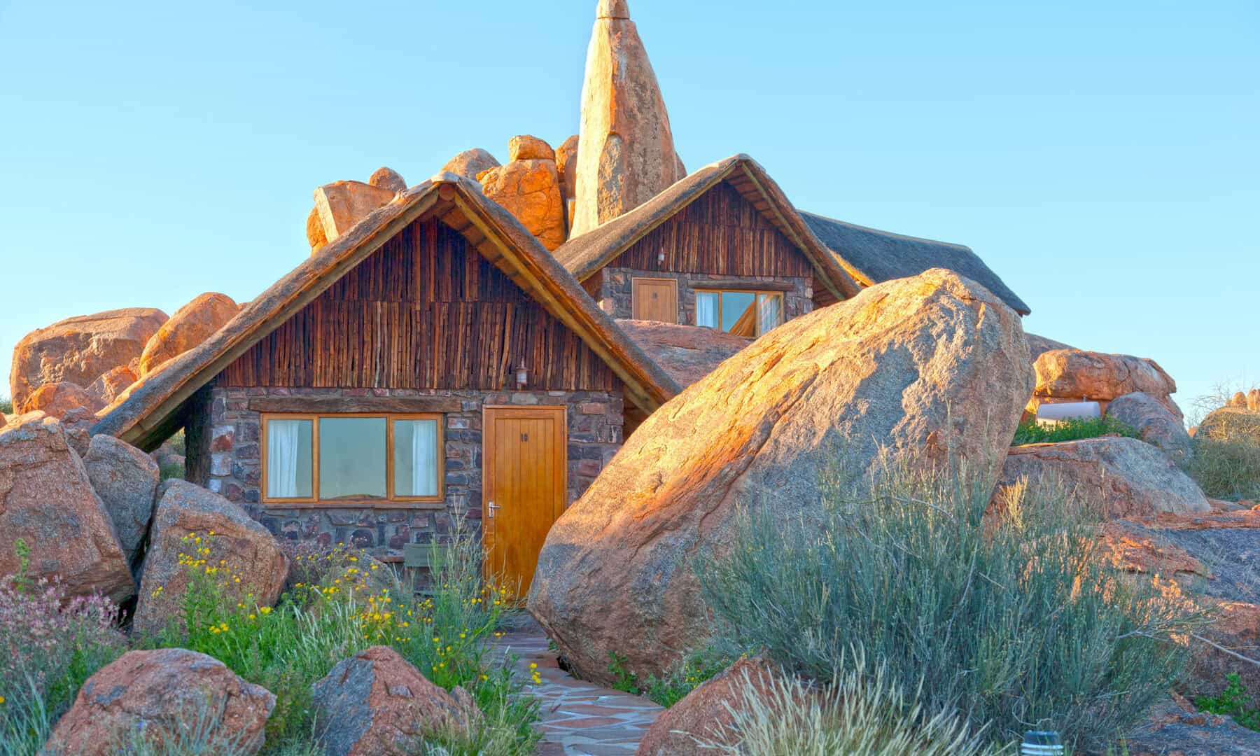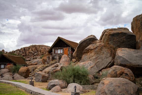 Walkways lead to 30 natural stone chalets nestled amongst granite boulders.