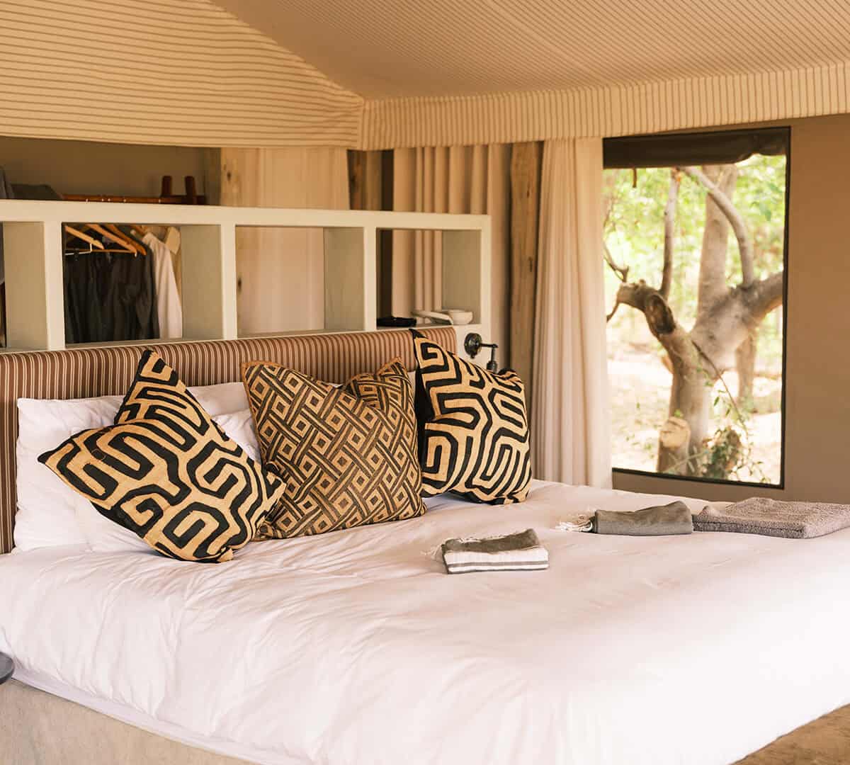Days are filled with discovery, from game drives to guided walking safaris and mokoro excursions. To elevate your stay, you can even opt for a horseback safari and ride alongside the Delta’s winding channels and waterways (at an additional fee), or relax beside the refreshing plunge pool. In the evenings, the boma becomes a central gathering point where you can sit by the fire as the grunts of hippos provide the ultimate soundtrack.