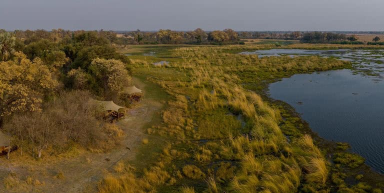 Cha Cha Metsi is situated in Botswana’s Okavango Delta, overlooking the permanent Santantadibe River. This secluded camp is surrounded by shimmering lagoons, lush floodplains, and islands fringed with ancient trees. The area is a sanctuary for diverse wildlife, where you can observe herds of elephant and giraffe.