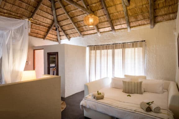 Chacma Bush Camp is a family-friendly camp located in Maseke Balule Game Reserve. There are three chalets at Chacma Bush Camp, constructed from a mix of stone and natural boulders. All rooms are equipped with air conditioning, an en-suite bathroom with a shower, high-thread-count linens and the highest quality mattresses to ensure a comfortable stay. The lodge itself sleeps up to 10 people and children over five are welcome. Guests can enjoy the views of a small waterhole where elephant herds usually stop by for a drink. Guests also have the option of enjoying a combination of outdoor activities and taking advantage of the lodge facilities.