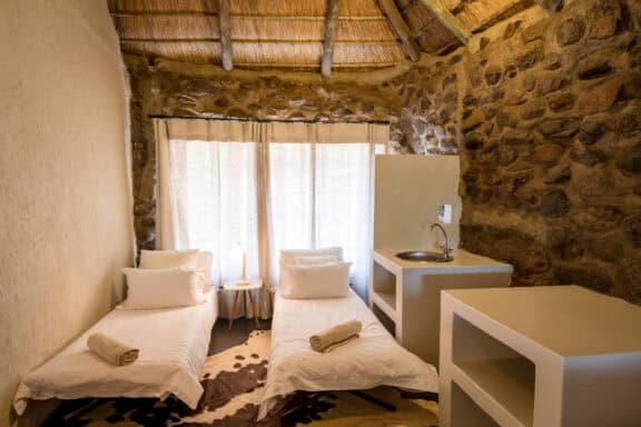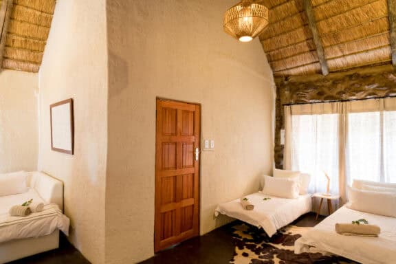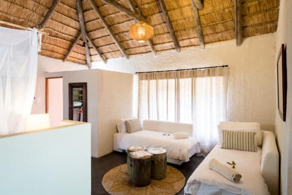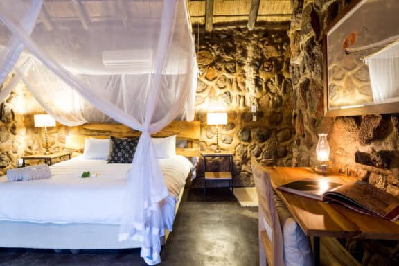 Chacma Bush Camp is a family-friendly camp located in Maseke Balule Game Reserve. There are three chalets at Chacma Bush Camp, constructed from a mix of stone and natural boulders. All rooms are equipped with air conditioning, an en-suite bathroom with a shower, high-thread-count linens and the highest quality mattresses to ensure a comfortable stay. The lodge itself sleeps up to 10 people and children over five are welcome. Guests can enjoy the views of a small waterhole where elephant herds usually stop by for a drink. Guests also have the option of enjoying a combination of outdoor activities and taking advantage of the lodge facilities.