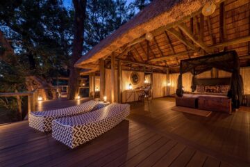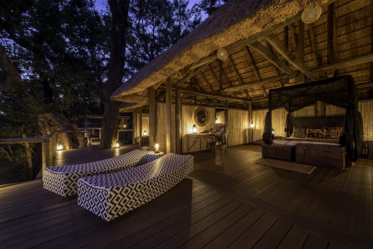 Early morning views are the rippling waters of the Luangwa River, the gentle rise of the Chindeni Hills and a vast African sky – and you haven’t even left the four poster bed in your handsome stilted tree-house.