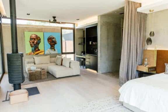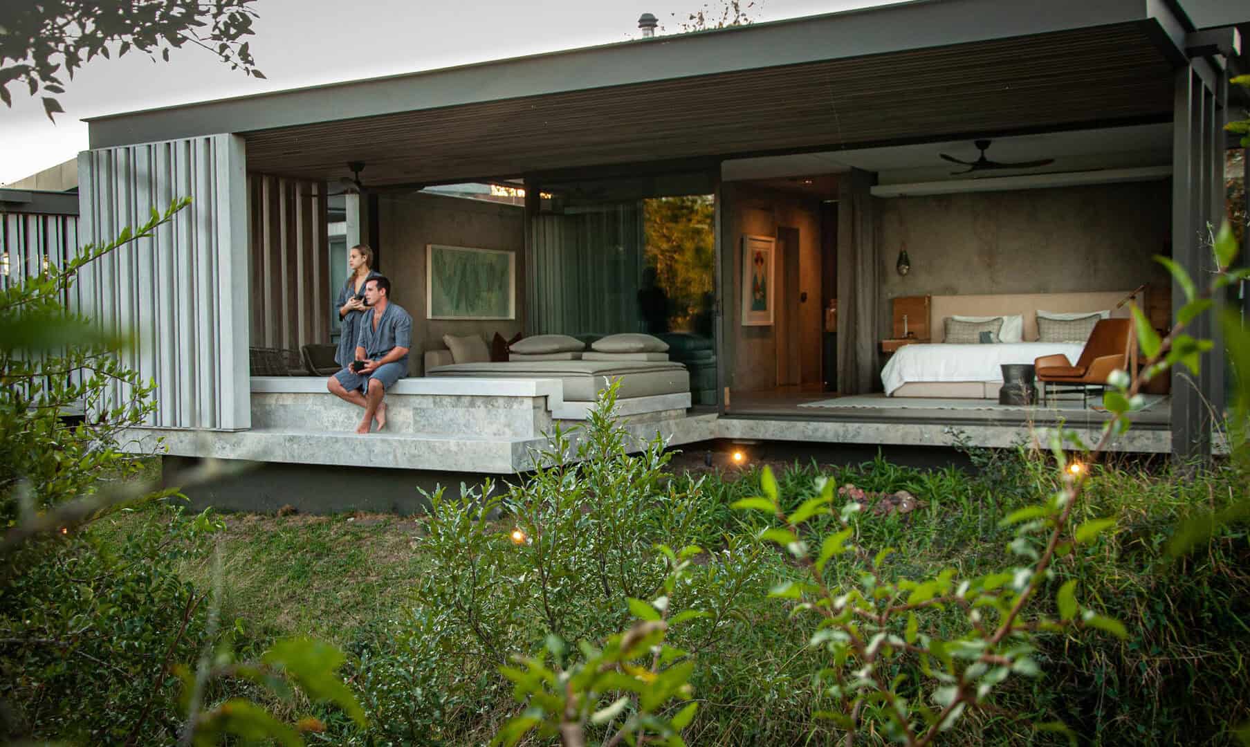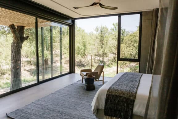 Your spacious, designer Private Suite enjoys uninterrupted views and deep connection with the natural bushveld surrounds. Soak in the tranquillity on the patio with its expansive daybed or opt for the sanctuary of the lounge.