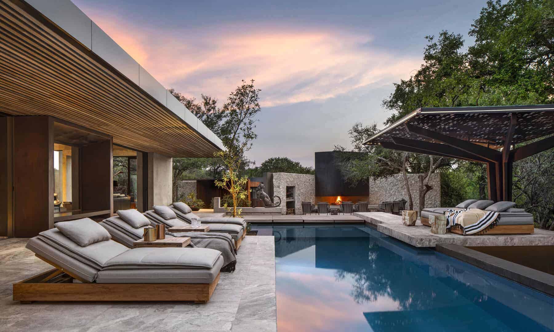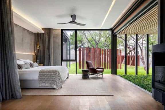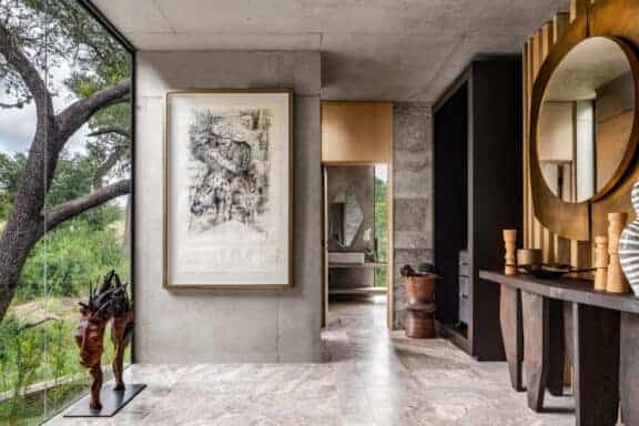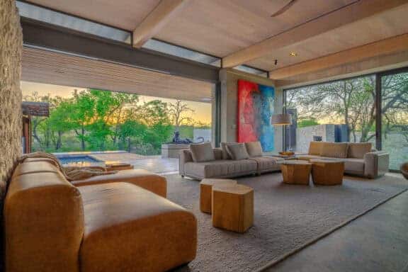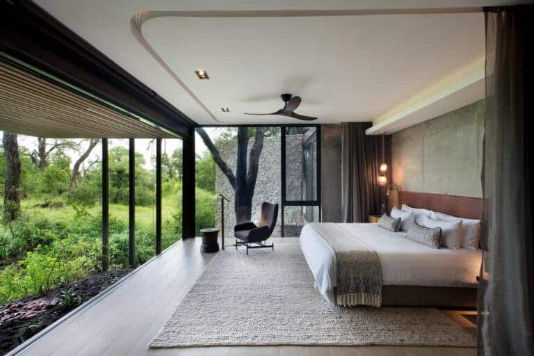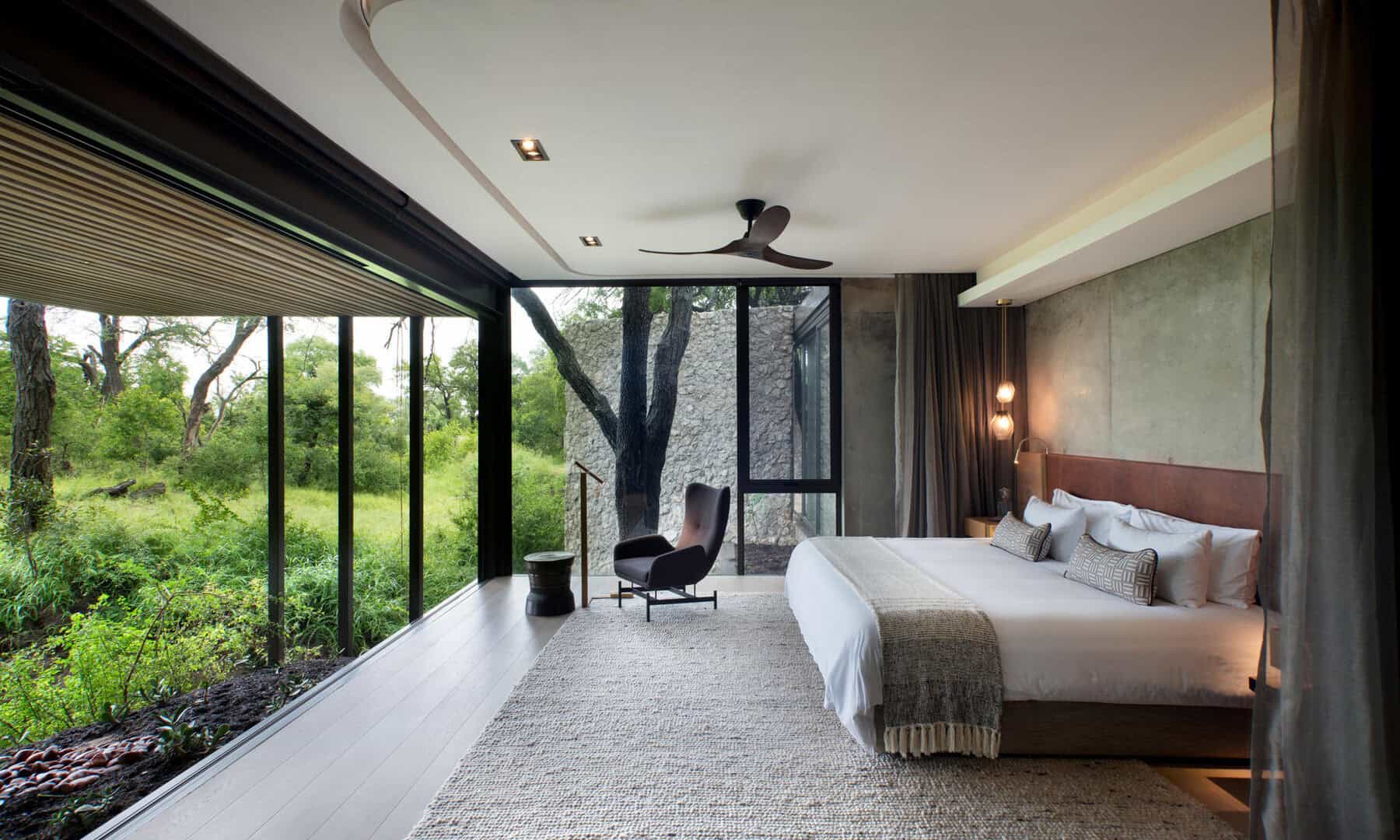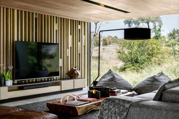 Windows of impressive, full-length stature frame the natural bush setting without while allowing the sounds of nature to flow seamlessly within. ‘Mvula’ is a private sanctuary, characterised by its forested location. Organic accents reflect the authenticity and raw power of its spotted feline namesake.
