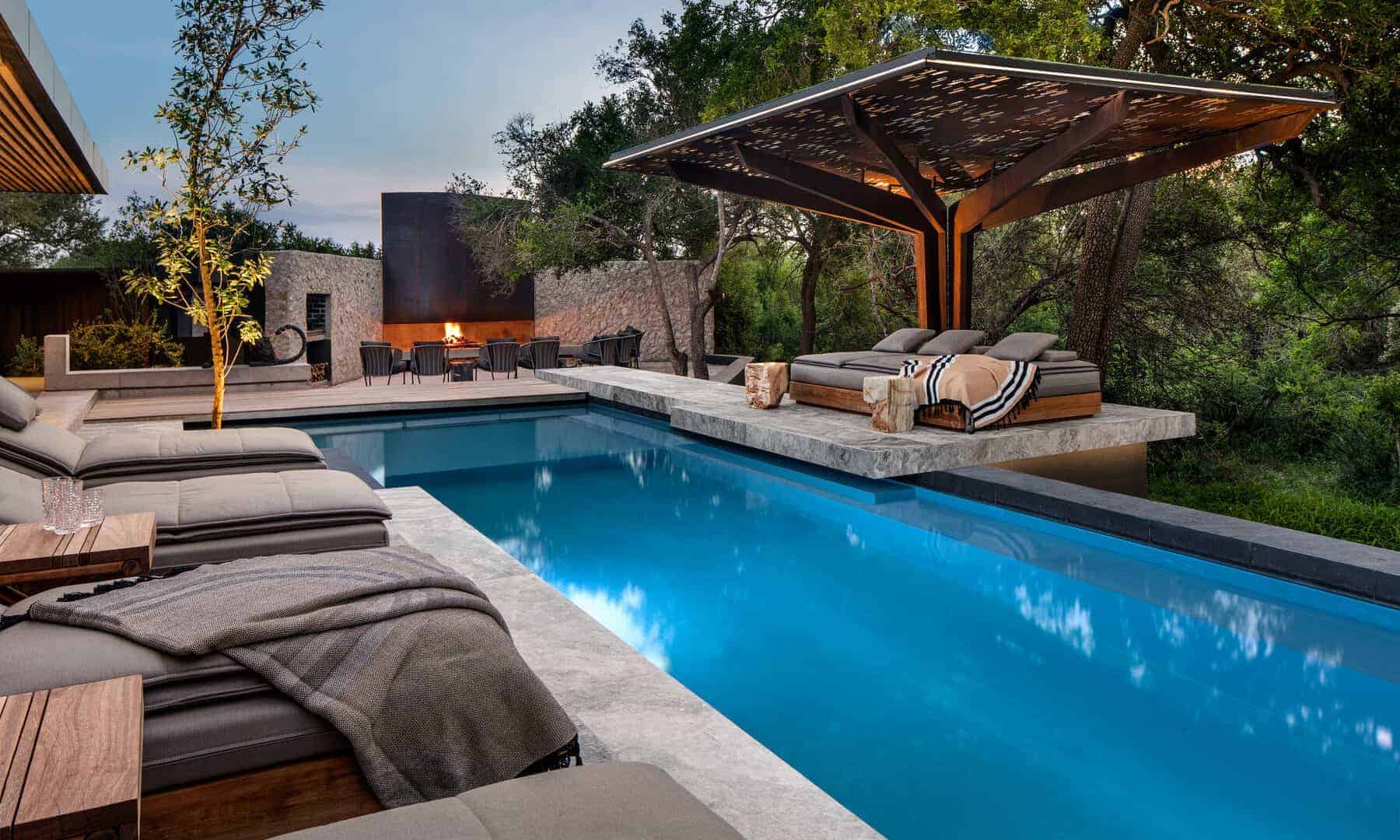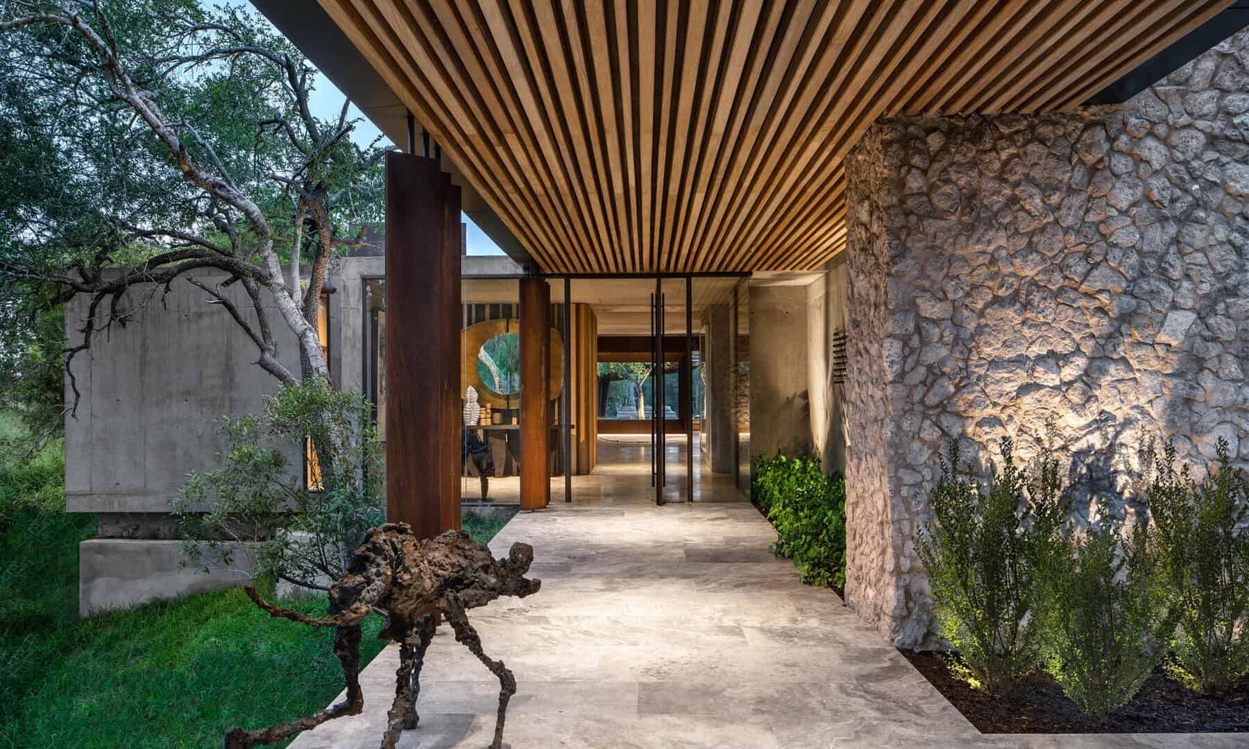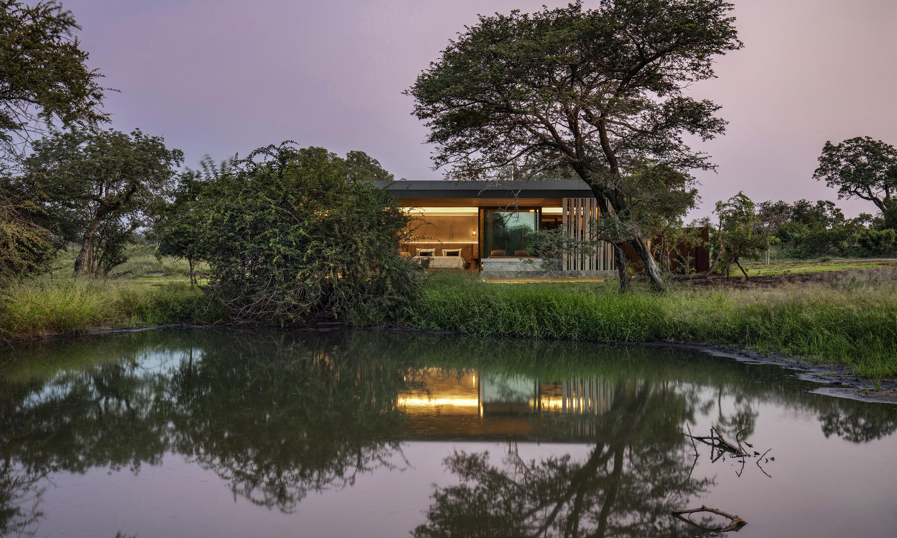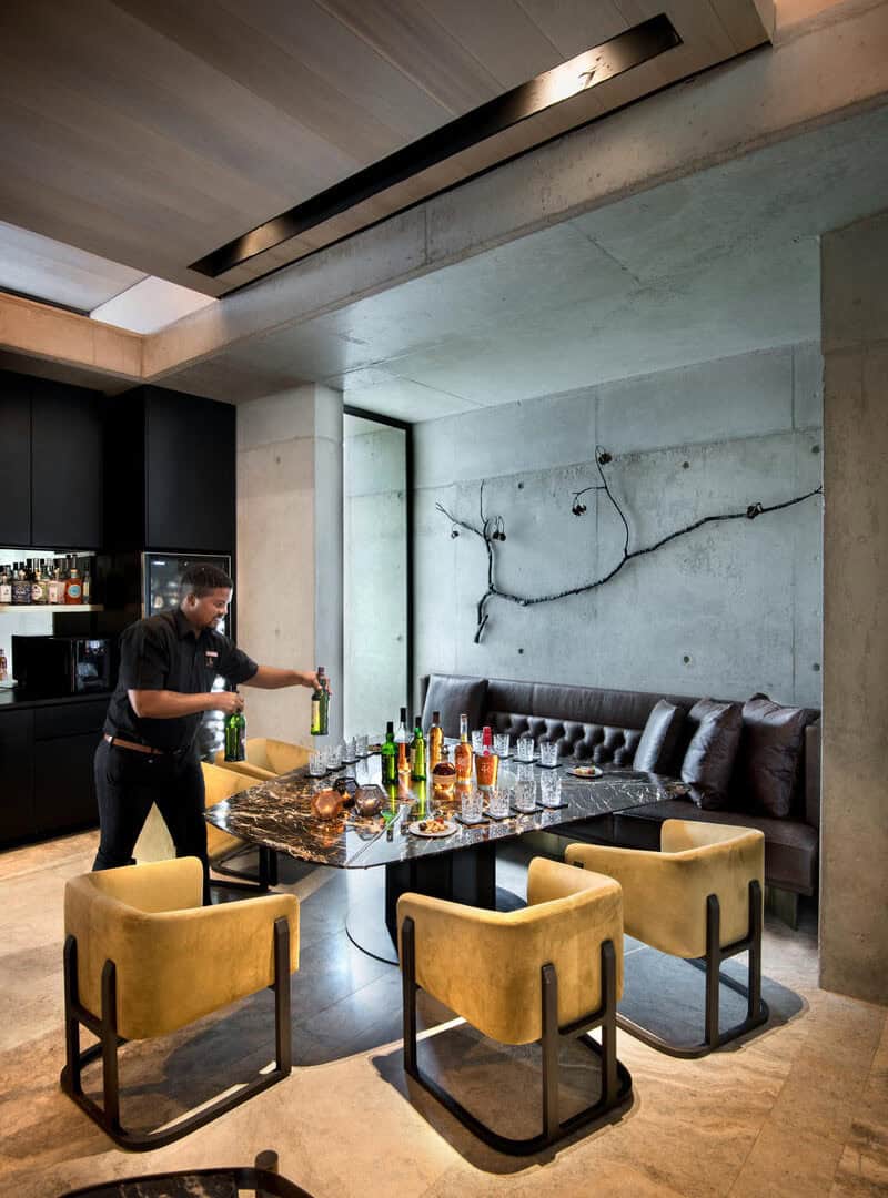 Windows of impressive, full-length stature frame the natural bush setting without while allowing the sounds of nature to flow seamlessly within. ‘Mvula’ is a private sanctuary, characterised by its forested location. Organic accents reflect the authenticity and raw power of its spotted feline namesake.