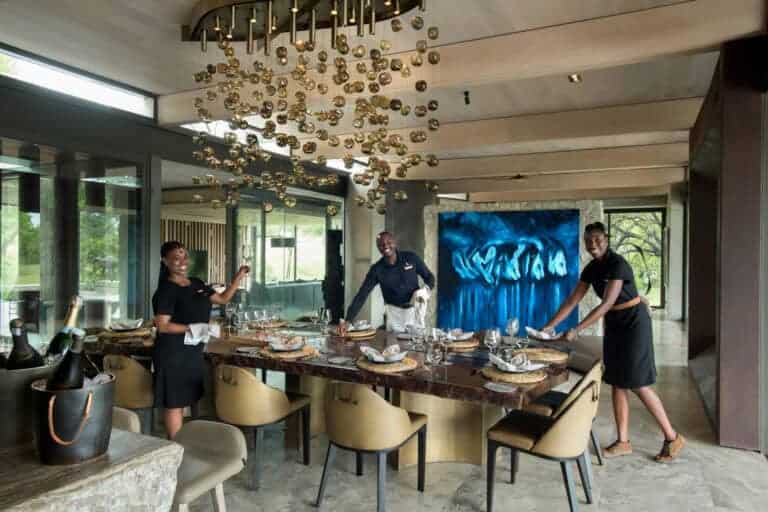 The deck is a wonderful space to enjoy an al fresco meal. On balmier nights opt for the inviting temperature-controlled wine gallery. On chillier nights, you cannot beat a hearty meal around the magnificent dinner table. Tales of Mvula’s hunting prowess and fierce protection of his Cheetah Plains home range have sparked the imagination of many a storyteller.
