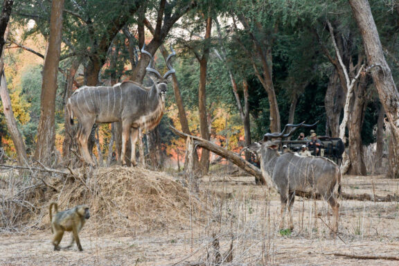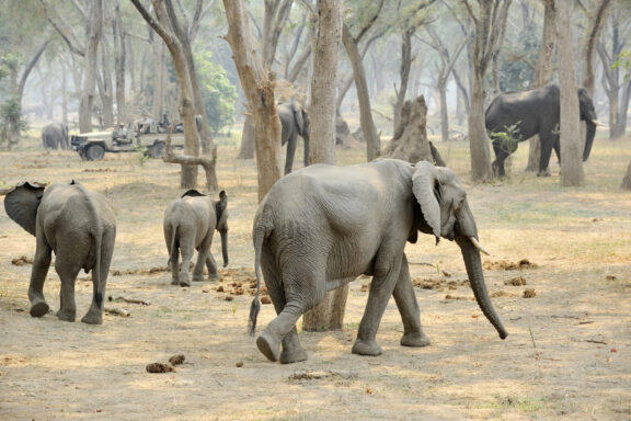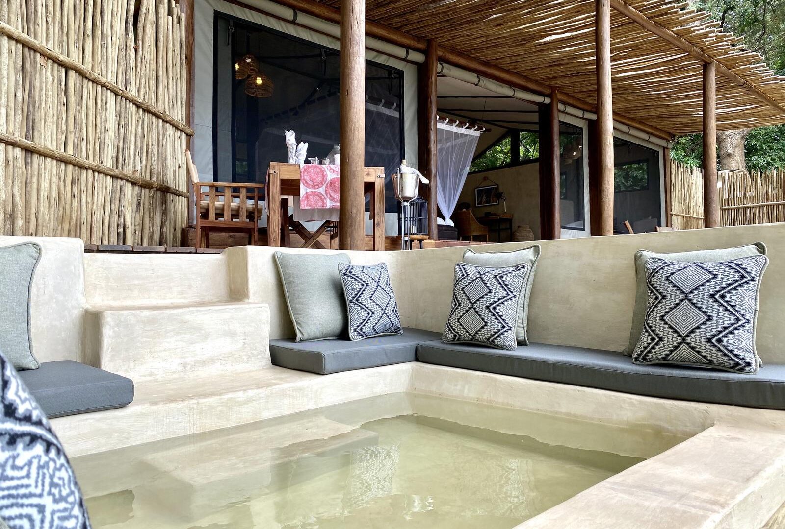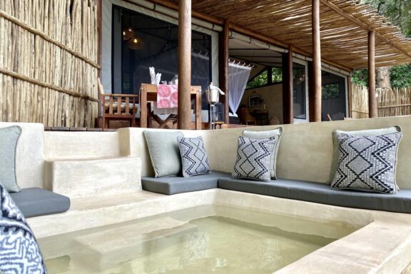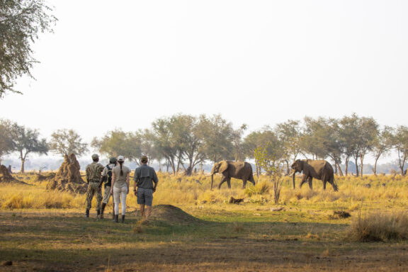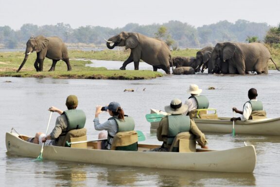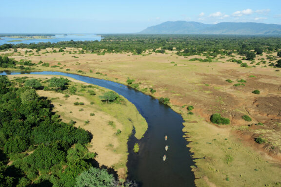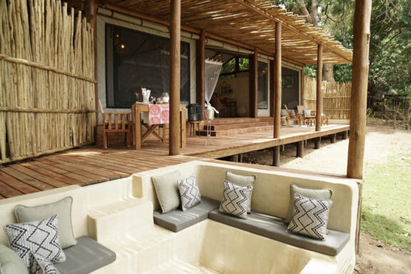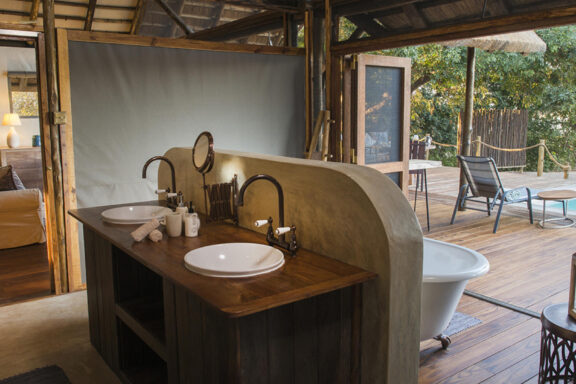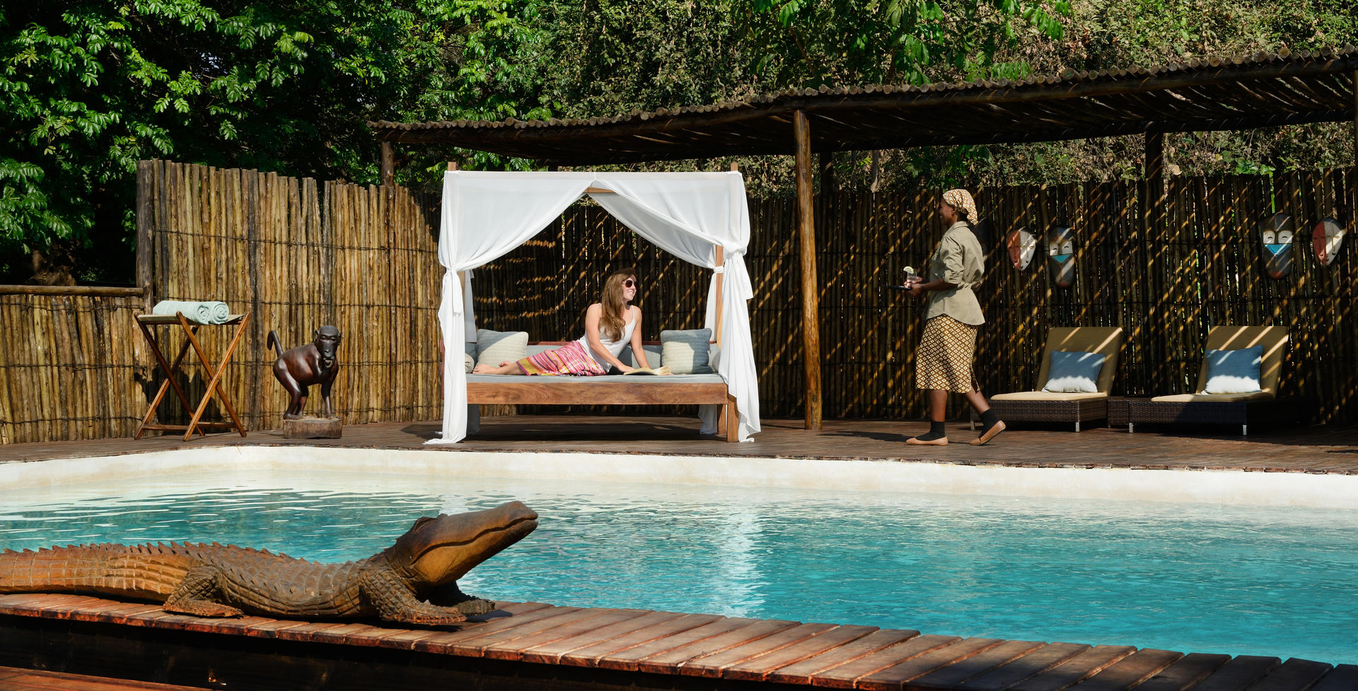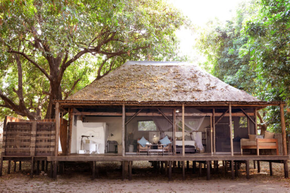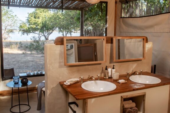 On the banks of the Zambezi River, under the largest grove of Mahogany trees, the multi-award winning “Best in Africa” Chiawa Camp holds the prime position in the heart of Zambia’s Lower Zambezi National Park. A stunning thatched lounge/bar area with an upstairs viewing deck provides one of the best views of the Zambezi.