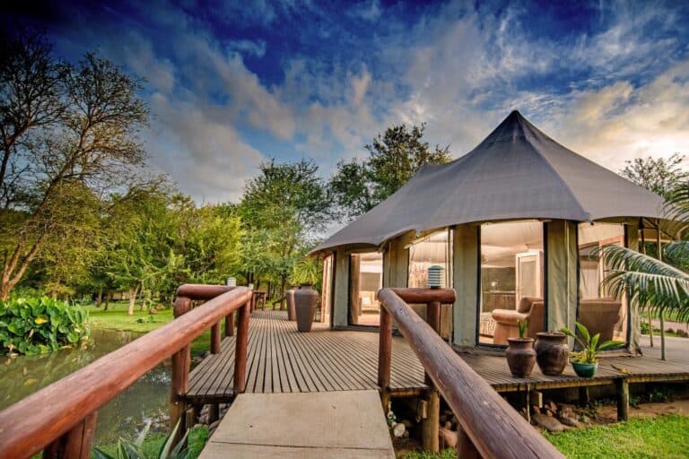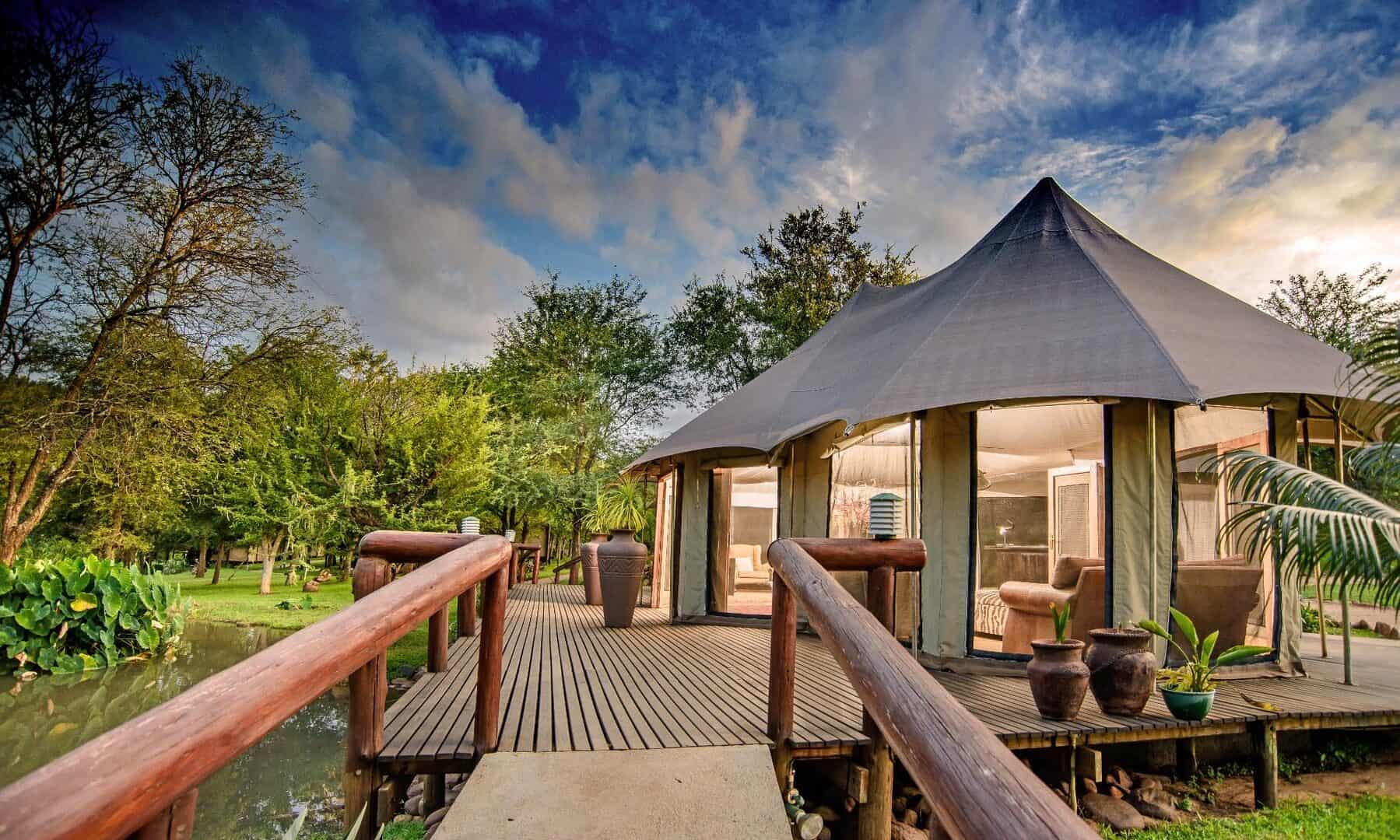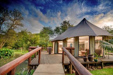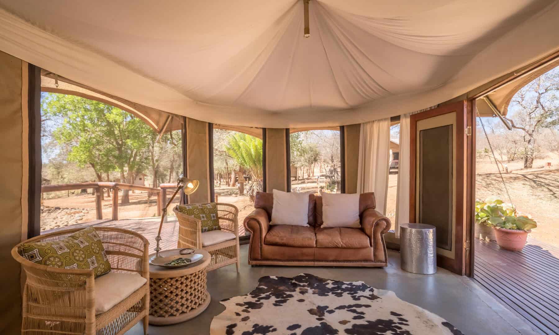 Situated under the shade of towering knob thorns and Jackleberry trees, the camp accommodates 44 guests in luxury tented suites.