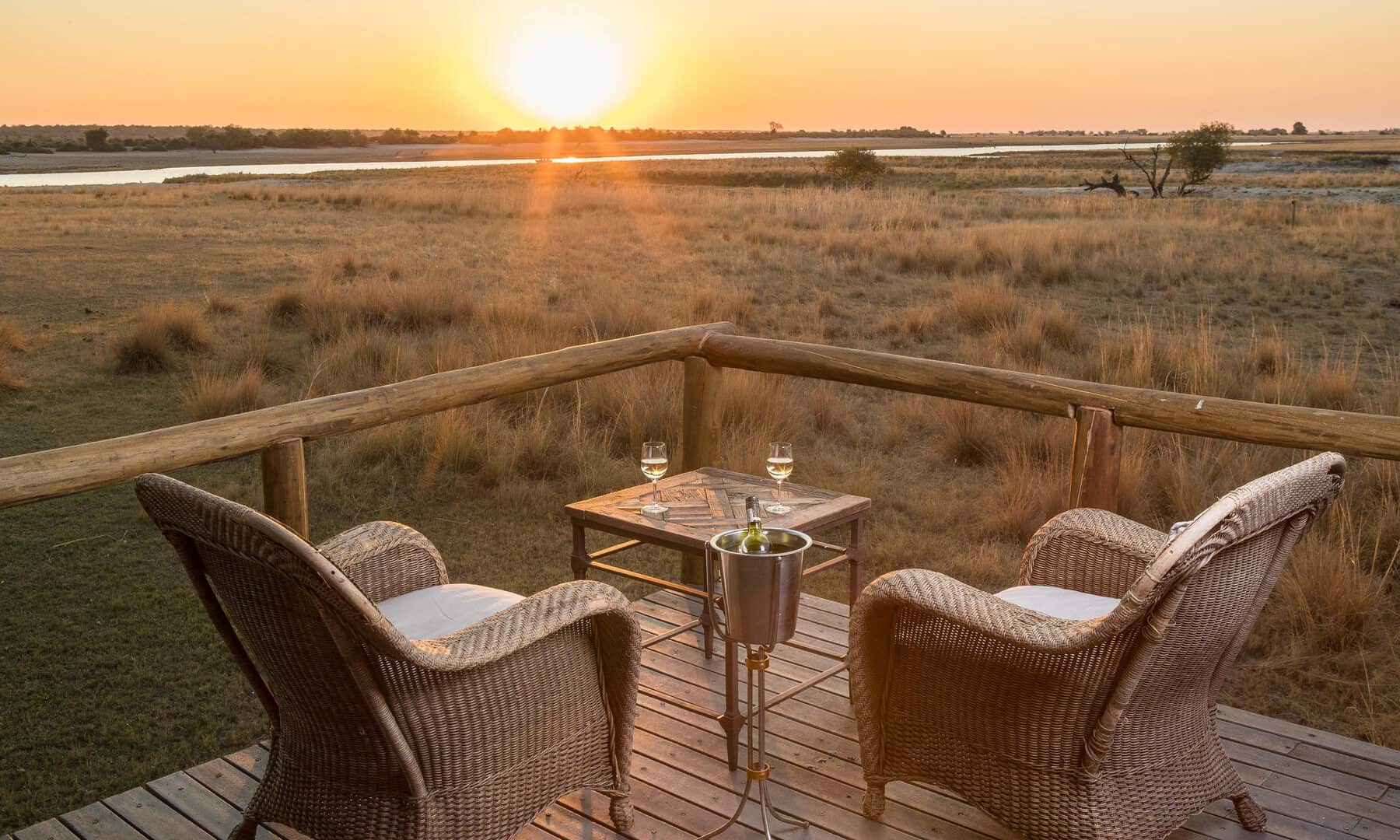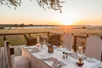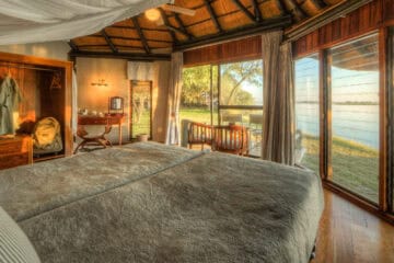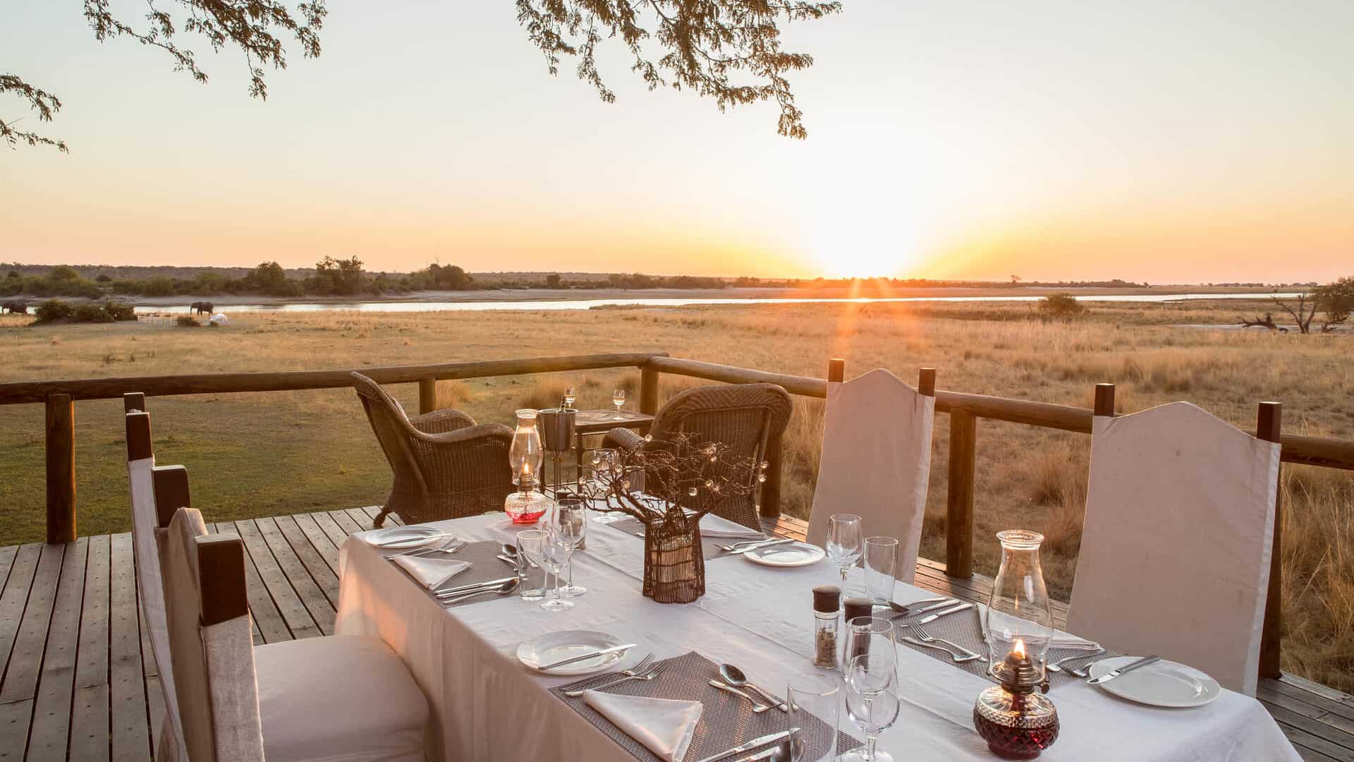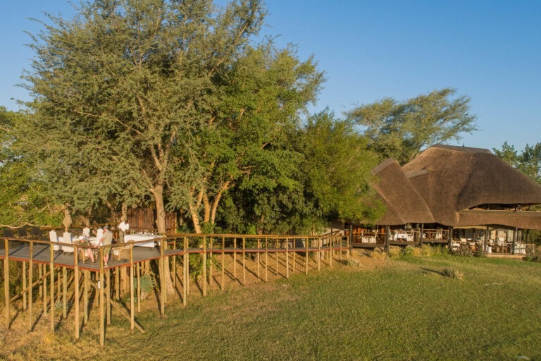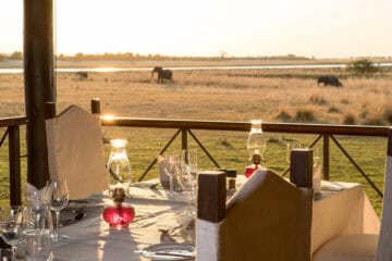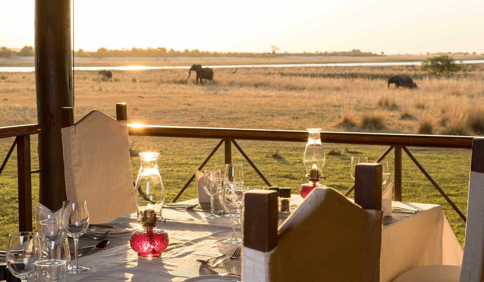 Set in a classic African savanna environment with sweeping vistas, the focal point of the lodge is a thatched open sided lodge which commands a 270 degree view over the Chobe River and beyond to the Chobe National Park.
