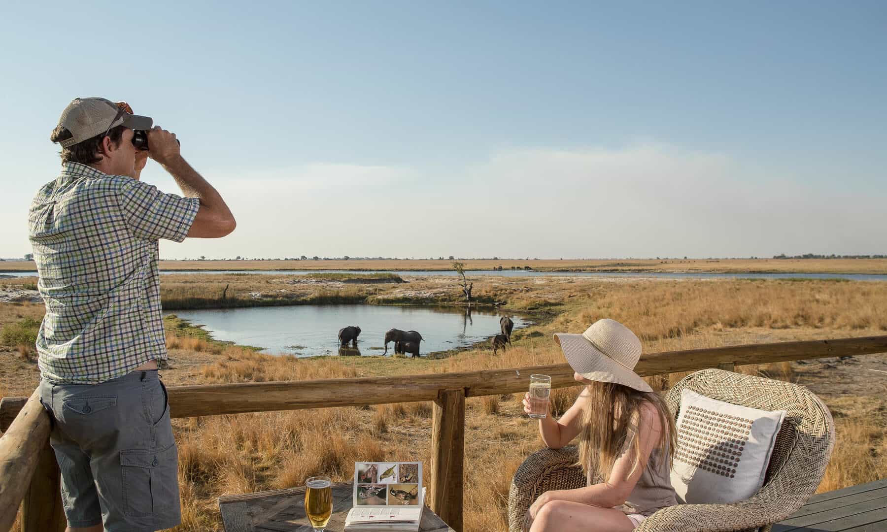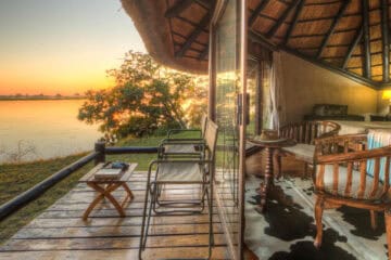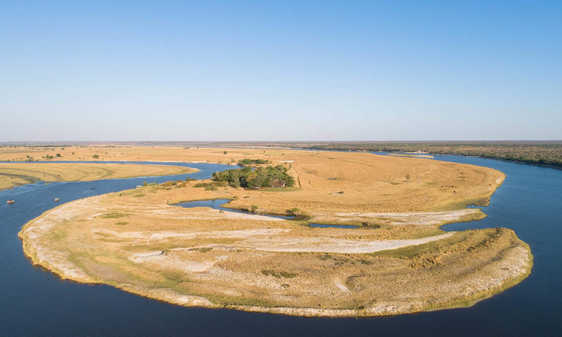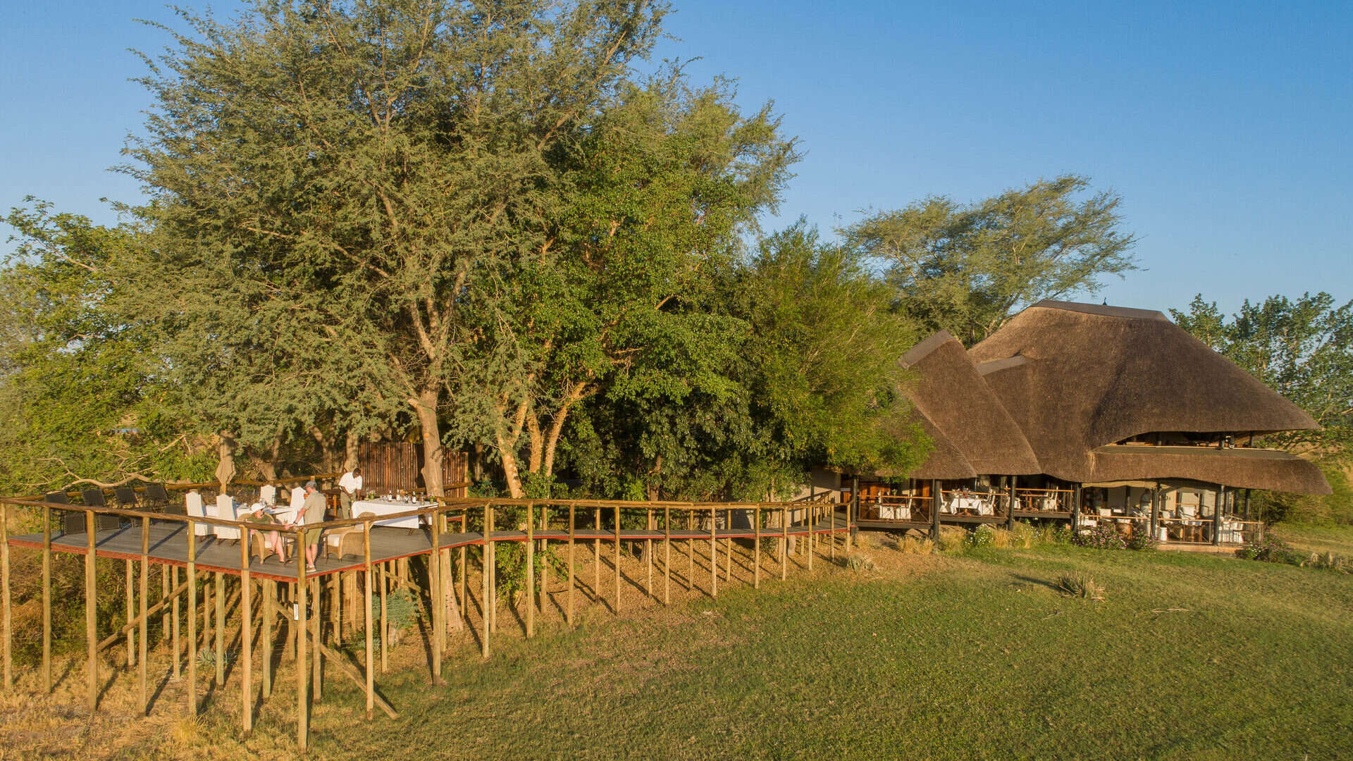 Set in a classic African savanna environment with sweeping vistas, the focal point of the lodge is a thatched open sided lodge which commands a 270 degree view over the Chobe River and beyond to the Chobe National Park.