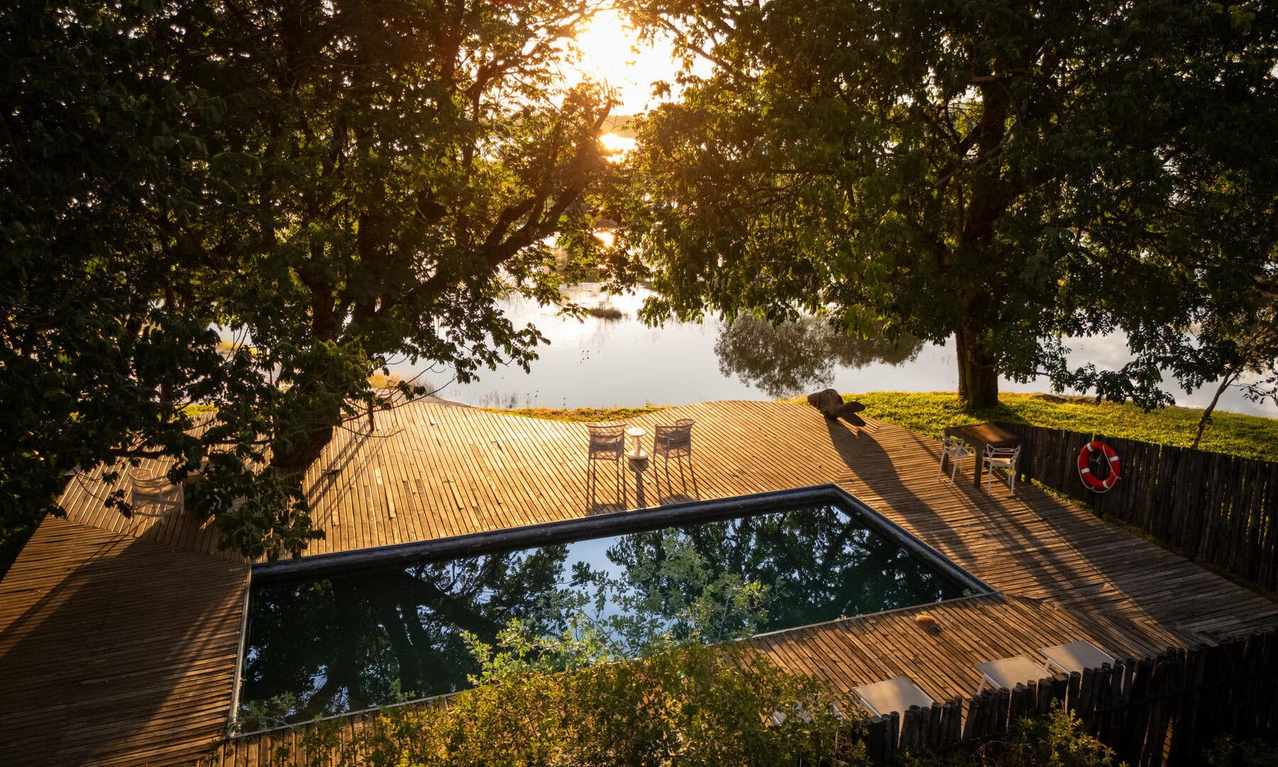 Breathtaking Chundu Island is only 21 km upstream from Zimbabwe’s legendary Victoria Falls. Eight spacious palm-thatched suites, each with their own private deck and perfect view of the Zambezi, are nestled beneath the magnificent riverine trees.